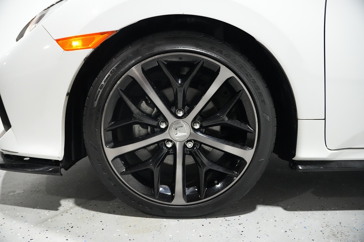 The 2021 Honda Civic Hatchback Sport CVT in Platinum White Pearl exudes a sleek and modern aesthetic that effortlessly catches the eye. Its curvaceous design is complemented by the aggressive styling of the sporty front and rear bumpers, as well as the distinct look of the fog lights that add a touch of boldness. The exterior's alluring shade of Platinum White Pearl beautifully contrasts with the striking black interior, creating a sophisticated ambiance that enhances every drive. Under the hood, the Civic is powered by a highly efficient 1.5L 4-cylinder engine that provides a perfect blend of performance and fuel economy, ideal for both city commutes and highway travel. The Sport CVT transmission offers seamless gear changes that optimize the driving experience, with active cruise control ensuring relaxation on longer journeys. Advanced safety features like forward collision warning, lane departure warning, and lane keep assist work in harmony to provide peace of mind on the road. For added convenience, this Civic is equipped with modern amenities such as remote start, keyless entry, and a comprehensive telematics system that keeps you connected to your vehicle. The backup camera offers an extra level of security and ease when maneuvering in tight spaces, further aided by the intuitive design of the interior layout. Whether navigating urban landscapes or exploring the open road, the 2021 Honda Civic Hatchback Sport CVT ensures every drive is as safe as it is enjoyable, wrapped in a package that’s as stylish as it is practical.