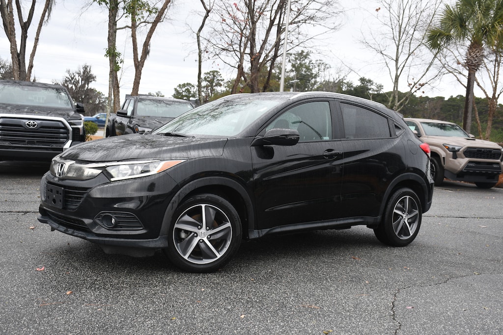 Stokes Toyota Hilton Head 2021 Honda HR-V EX in Crystal Black Pearl, Factory Equipped With: Power Windows, Power Locks, Cruise Control, Remote Keyless Entry, 8-Way Power Drivers Seat, Integrated Back Up Camera, Sunroof, Alloy Wheels, AWD, 17" Machine-Finished Alloy Wheels, 6 Speakers, ABS brakes, Air Conditioning, Apple CarPlay/Android Auto, Automatic temperature control, Brake assist, Bumpers: body-color, Cloth Seat Trim, Dual front impact airbags, Dual front side impact airbags, Electronic Stability Control, Front fog lights, Fully automatic headlights, Heated door mirrors, Low tire pressure warning, Panic alarm, Power steering, Rear window wiper, Steering wheel mounted audio controls, Variably intermittent wipers. Clean CARFAX. Professionally Serviced and Detailed for your Peace of Mind. CALL US TODAY FOR MORE DETAILS OR TO SCHEDULE A TEST DRIVE AT 843.815.0240 OR VISIT US ON THE WEB AT WWW.STOKESTOYOTAHILTONHEAD.COM OR VISIT US AT 100 FORDING ISLAND ROAD, BLUFFTON SC 29910.