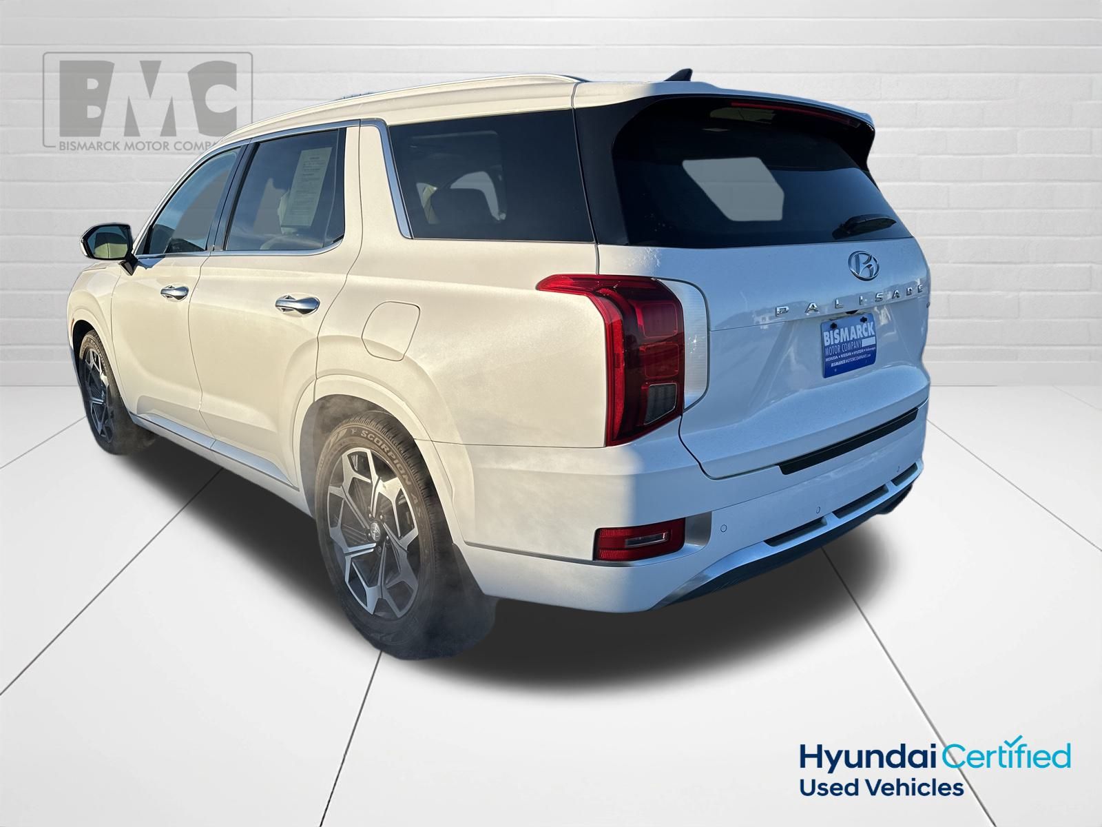 At Bismarck Motor Company, we believe car buying should be transparent and pressure-free. Every vehicle we sell is thoroughly inspected, competitively priced, and comes with our commitment to honest service. No games, no gimmicks—just quality vehicles and people who care about getting you on the road with confidence. This stunning 2021 Hyundai Palisade Calligraphy is a true standout in the world of premium SUVs. With its striking Hyper White exterior, sophisticated Nappa leather interior, and an impressive array of advanced features, this Palisade is the perfect blend of style, comfort, and capability. Under the hood, you'll find a powerful V6 engine mated to an 8-speed automatic transmission with SHIFTRONIC, providing the perfect balance of performance and efficiency. The Palisade's impressive list of standard features includes a state-of-the-art navigation system, a premium 12-speaker harman/kardon audio system, dual-zone automatic climate control, a heads-up display, and a panoramic sunroof. Heated and ventilated front seats, along with heated rear seats, ensure maximum comfort for all passengers, while the power liftgate and cargo cover/screen make loading and unloading a breeze. Safety is also a top priority, with the Palisade featuring an array of advanced driver-assistance technologies, including forward collision-avoidance assist, lane keep assist, and blind-spot monitoring. With its impressive combination of style, technology, and safety, this Palisade is the perfect choice for the discerning SUV buyer. Don't miss your chance to experience the exceptional quality and value of this 2021 Hyundai Palisade Calligraphy. Call, Click or Visit today at our locations in either North Bismarck or Main Street Mandan.
