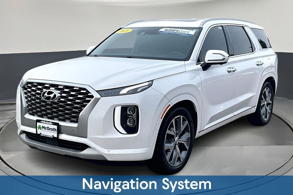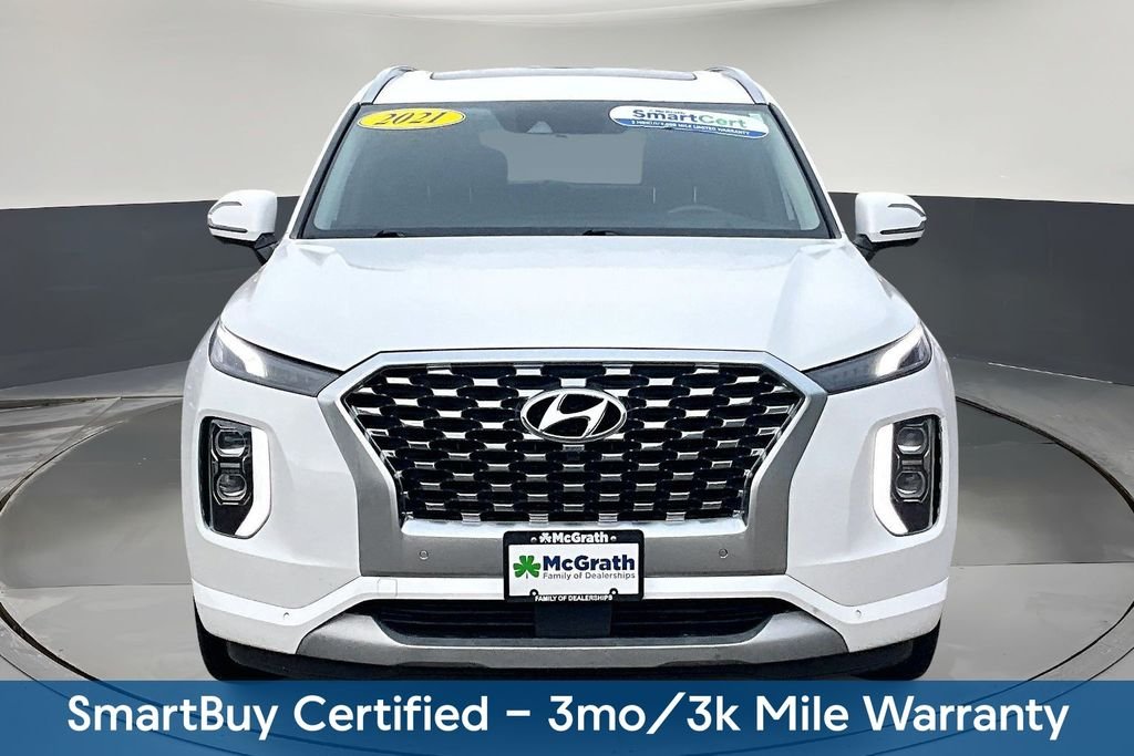 Discover the ultimate family-friendly SUV in the 2021 Hyundai Palisade Limited. This stunning white Palisade boasts a powerful V6 engine, advanced all-wheel-drive capabilities, and an impressive array of premium features that will elevate your driving experience.Highlighted by our SmartBuy Certified program, this Palisade comes with a 3-month/3,000-mile warranty, giving you peace of mind and confidence in your purchase. Additionally, it's equipped with a range of thoughtful extras, including a Bumper Applique, Carpeted Floor Mats, and a Cargo Net, ensuring your Palisade looks and functions at its best. Stepping inside, you'll be surrounded by the Palisade's premium Nappa Leather-trimmed interior, which offers unparalleled comfort and style. The 12-speaker harman/kardon® audio system, paired with the intuitive Navigation System, will keep you and your passengers entertained and connected on every journey. Discover the convenience of the Heads-Up Display, which projects vital driving information directly into your line of sight, and the Memory Seat function, which remembers your preferred seating position. The Heated and Ventilated Front Bucket Seats and Heated Steering Wheel ensure you and your loved ones remain comfortable, no matter the weather. With the Palisade's impressive 19 city and 24 highway MPG ratings, you can enjoy the open road with confidence, knowing you're getting excellent fuel efficiency. And with the Power Liftgate and Apple CarPlay® & Android Auto™ integration, you'll have the versatility and connectivity you need for your busy lifestyle. Whether you're taking the family on a road trip or navigating the daily commute, the 2021 Hyundai Palisade Limited is the perfect companion. Experience the ultimate in luxury, capability, and convenience – visit our showroom today and let us demonstrate why the Palisade is the SUV you've been searching for.