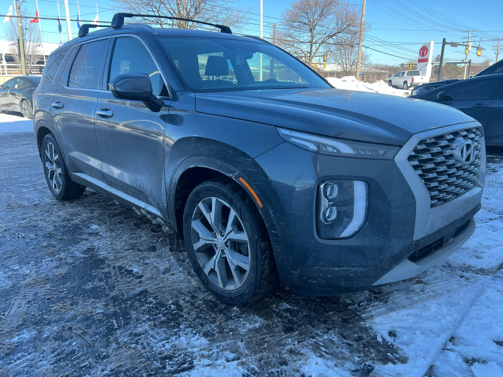 EPA 24 MPG Hwy/19 MPG City! Steel Graphite exterior and Black interior. Clean. Heated Seats, Moonroof, Third Row Seat, Rear Air, Quad Bucket Seats, Roof Rack Cross Rails, Carpeted Floor Mats, Convenience Package, Non-Smoker vehicle. This Palisade is priced $1,700 below J.D. Power Retail. The team at Toyota Cleveland Heights would like to welcome you to our dealership in Cleveland Heights, where we're confident you'll find the vehicles you're looking for at a price you can afford.