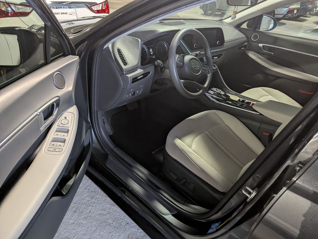 2021 Hyundai Sonata SEL Portofino Gray. Odometer is 17429 miles below market average! Dark Gray w/Premium Cloth Seating Surfaces. Option Group 01, Dark Gray w/Premium Cloth Seating Surfaces, 4-Wheel Disc Brakes, 6 Speakers, ABS brakes, Air Conditioning, Alloy wheels, AM/FM radio: SiriusXM, Apple CarPlay & Android Auto, Auto High-beam Headlights, Automatic temperature control, Brake assist, Bumpers: body-color, Cargo Net, Carpeted Floor Mats, Delay-off headlights, Driver door bin, Driver vanity mirror, Dual front impact airbags, Dual front side impact airbags, Electronic Stability Control, Emergency communication system: Blue Link Connected Car Service (3-year complimentary subscription), Exterior Parking Camera Rear, Four wheel independent suspension, Front anti-roll bar, Front Bucket Seats, Front Center Armrest, Front dual zone A/C, Front reading lights, Fully automatic headlights, Heated door mirrors, Heated Front Bucket Seats, Heated front seats, Illuminated entry, Knee airbag, Low tire pressure warning, Occupant sensing airbag, Outside temperature display, Overhead airbag, Overhead console, Panic alarm, Passenger door bin, Passenger vanity mirror, Power door mirrors, Power driver seat, Power steering, Power windows, Premium Cloth Seating Surfaces, Radio data system, Radio: AM/FM/MP3/HD/SiriusXM Display Audio, Rear anti-roll bar, Rear seat center armrest, Rear side impact airbag, Rear window defroster, Remote keyless entry, Reversible Cargo Tray, Security system, Speed control, Speed-sensing steering, Speed-Sensitive Wipers, Split folding rear seat, Steering wheel mounted audio controls, Tachometer, Telescoping steering wheel, Tilt steering wheel, Traction control, Trip computer, Turn signal indicator mirrors, Variably intermittent wipers, Wheel Locks, and Wheels: 17 x 7.0J Aluminum Alloy.