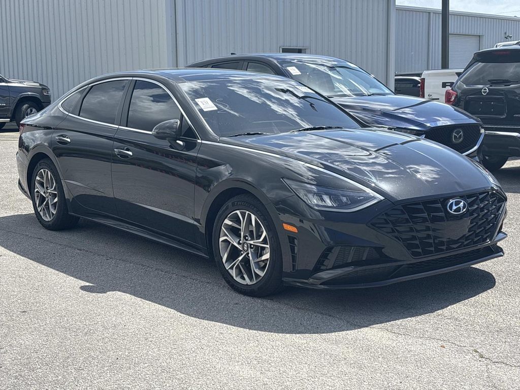 Recent Arrival! Phantom Black 2021 Hyundai Sonata SEL FWD 8-Speed Automatic with Overdrive 2.5L I4. Black Cloth, 12.3" LCD Instrument Cluster, 2nd Row Air Vent, 2nd Row USB Charge Port, 4-Wheel Disc Brakes, 6 Speakers, ABS brakes, Air Conditioning, Alloy wheels, AM/FM radio: SiriusXM, Apple CarPlay & Android Auto, Auto High-beam Headlights, Automatic temperature control, Brake assist, Bumpers: body-color, Cargo Hook, Cargo Net, Cargo Package, Carpeted Floor Mats, Convenience Package, Delay-off headlights, Driver door bin, Driver vanity mirror, Dual front impact airbags, Dual front side impact airbags, Electronic Stability Control, Emergency communication system: Blue Link Connected Car Service (3-year complimentary subscription), Exterior Parking Camera Rear, First Aid Kit, Four wheel independent suspension, Front anti-roll bar, Front Bucket Seats, Front Center Armrest, Front dual zone A/C, Front reading lights, Fully automatic headlights, Heated door mirrors, Heated Front Bucket Seats, Heated front seats, Hyundai Digital Key, Illuminated entry, Knee airbag, Leather-Wrapped Steering Wheel, LED Interior Lights, Low tire pressure warning, Occupant sensing airbag, Option Group 03, Outside temperature display, Overhead airbag, Overhead console, Panic alarm, Panoramic Sunroof, Passenger door bin, Passenger vanity mirror, Power door mirrors, Power driver seat, Power steering, Power windows, Premium Cloth Seating Surfaces, Radio data system, Radio: AM/FM/MP3/HD/SiriusXM Display Audio, Rear anti-roll bar, Rear seat center armrest, Rear side impact airbag, Rear window defroster.