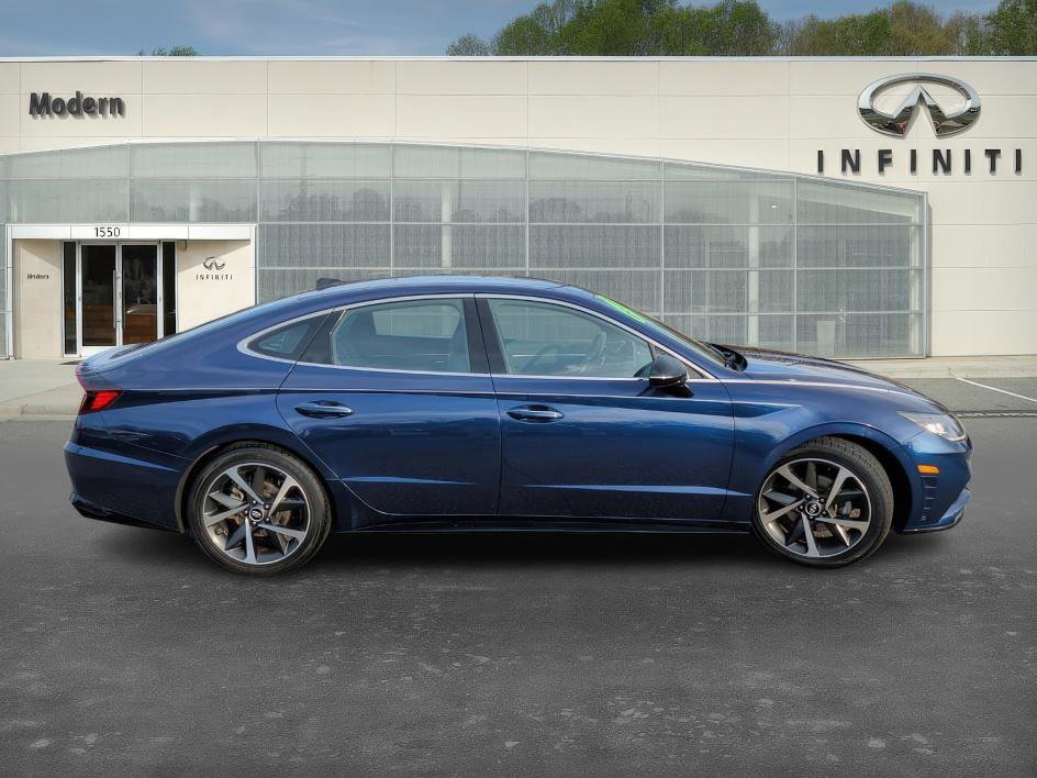 Priced below KBB Fair Purchase Price! Smartbuy 150 point inspection, the 2021 Hyundai Sonata SEL Plus comes equipped with added options including 19-inch alloy wheels with 245/40R19 tires, an electronic parking brake with automatic vehicle hold, a rearview camera with dynamic guidelines, LED headlights with automatic light control, heated side mirrors with turn signal indicators, proximity key entry with push button start, a hands-free smart trunk release, power door locks and windows with auto up/down front windows, heated Dinamica suede and leatherette combination seats, dual automatic temperature control, a power driver seat with lumbar support, a 60/40 split-folding rear seat, Smart Cruise Control with Stop & Go, Hyundai Digital Key for Android devices, a tilt-and-telescopic steering wheel with cruise, audio, and phone controls, a 12.3 LCD instrument cluster, an 8 color touchscreen display audio system, AM/FM/HD Radio with USB and auxiliary inputs, Apple CarPlay and Android Auto, SiriusXM Radio with trial, Blue Link connected services, and an auto-dimming rearview mirror with HomeLink. Added features include carpeted floor mats, a cargo tray, a rear bumper applique´, and wheel locks, all with no accidents reported. 2021 Hyundai Sonata 27/37 City/Highway MPG. Free Carfax available and free delivery in North Carolina. The price you see is our very best price. All of our vehicles are priced below the market value. You will appreciate our no-pressure approach and attention to customer service.