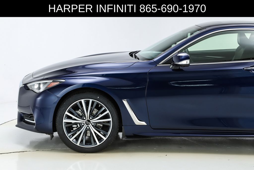 Elevate your driving experience with this stunning 2021 INFINITI Q60 3.0t LUXE. This captivating coupe blends exceptional performance, advanced technology, and refined luxury, creating a driving experience that is truly unparalleled. Powered by a potent 3.0L V6 engine and paired with a responsive 7-speed automatic transmission, this Q60 delivers thrilling acceleration and confident handling, thanks to its intelligent All-Wheel Drive system. With an EPA-estimated 19 city/27 highway MPG, you'll enjoy an exceptional blend of performance and efficiency. The interior of this Q60 is a true sanctuary, featuring premium Semi-Aniline Leather-Appointed Seating Surfaces, heated front seats, and a Dual-Occupant Memory System that remembers your preferred settings. The INFINITI InTouch infotainment system, complete with Navigation, Apple CarPlay, and Android Auto, keeps you connected and entertained on every journey. Elevate your driving experience with cutting-edge safety features, including Blind Spot Warning, Brake Assist, and Electronic Stability Control. The INFINITI Connection emergency communication system provides added peace of mind, while the Auto High-Beam Headlights and Rain-Sensing Wipers enhance visibility in any driving conditions. Indulge in the uncompromising craftsmanship and refined elegance of this 2021 INFINITI Q60 3.0t LUXE. With its stunning Blue exterior and a wealth of premium features, this coupe is sure to turn heads and deliver an exceptional driving experience.