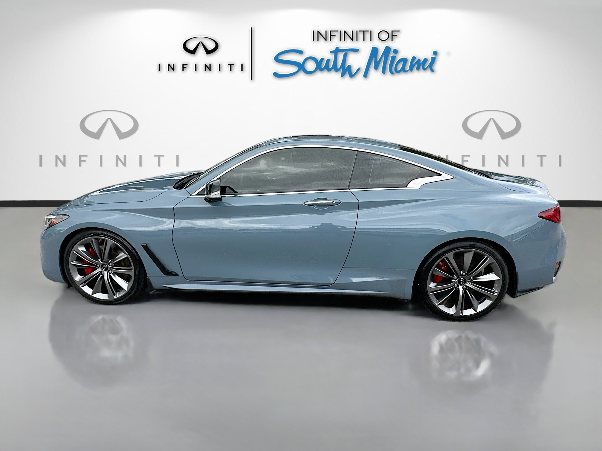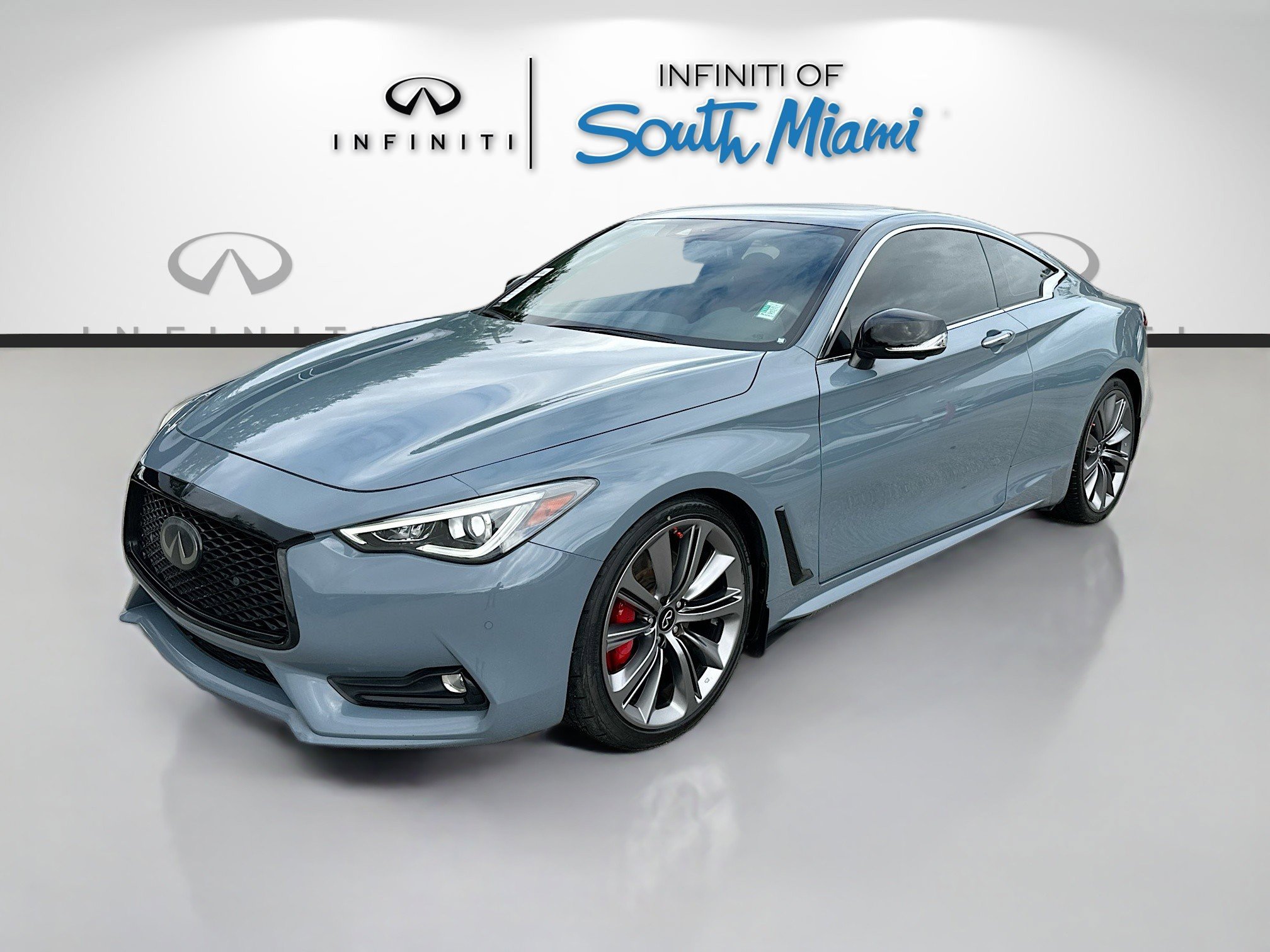 Recent Arrival! Priced below KBB Fair Purchase Price! Slate Gray 2021 INFINITI Q60 Red Sport 400 20/27 City/Highway MPG.