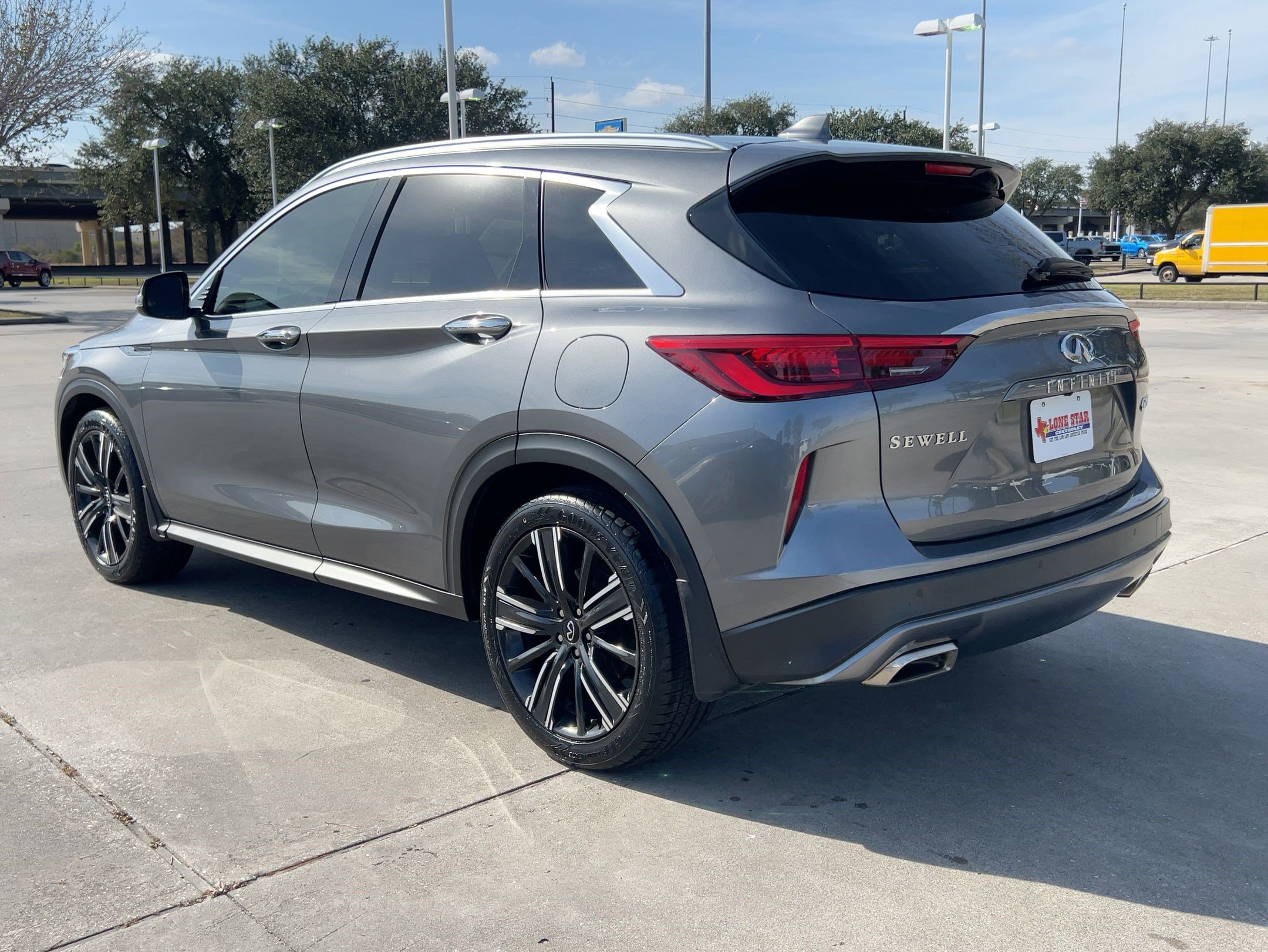 2021 INFINITI QX50 Luxe. 1-Owner. Blind Spot Monitor, Front Collision Mitigation, Cross-Traffic Alert, Lane Departure Warning, Lane Keeping Assist, Back-Up Camera, Adaptive Cruise Control with Steering Assist, Panoramic Roof, Heated Front Seats, Power Liftgate, Bluetooth Connection, Smart Device Integration, Auxiliary Audio Input, Universal Garage Door Opener. All recommended services are complete. Chat, email or call today to schedule your test drive and experience the difference for yourself! Please verify any information in question with Lone Star Chevrolet, located at: 18800 Northwest Fwy, Houston, TX, 77065. Visit us online at www.LoneStarChevrolet.com or call (866) 665-9782.