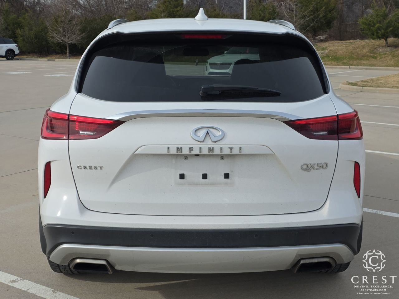 2021 INFINITI QX50 LUXE 23/29 City/Highway MPG Thank you for viewing our vehicle. You can see more Premium Pre-Owned vehicles like this one at CrestCars.com. Crest Automotive Group proudly serving the following communities: Plano, Mckinney, Allen, Richardson, Dallas, Ft. Worth, Grapevine, Bedford, Hurst, Mesquite, Frisco, Lewisville, Little Elm, Arlington, Coppell, Grand Prarie, Euless, Colleyville, Wylie, Lavon, Prosper, Denton, Murphey, Anna, Celina, Sherman, Southlake, Flowermound, DFW, Addison, Irving, Las Colinas, Garland, Aubrey, Oak Point, Corinth, University Park, Highland Park, Carrolton, Richardson, Melissa, Azle, Lake Dallas, Krum, Roanoke, Keller, Trophy Club, Farmers Branch. Haslet, Bedfprd. Euless, Hurst, North Richland Hills, Saginaw, Justin, Benbroook, White Settlement, Hudson Oaks, Weatherford, Crowley, Watauga, Cedar Hill, Desoto, Duncanville, Midlothian, Waxahachie, Mansfield, Red Oak, Lancaster, Ennis, Palmer, Balch Springs, Mesquite, Cleburne, Alvarado, Seagoville, Combine, Terrell, Rockwall, Sachase, Allen, The Colony, Pilot Point, Gainsville, Whitesboro, North Texas, Durant, Ardmore, Bridgeport, Decatur, Paris.