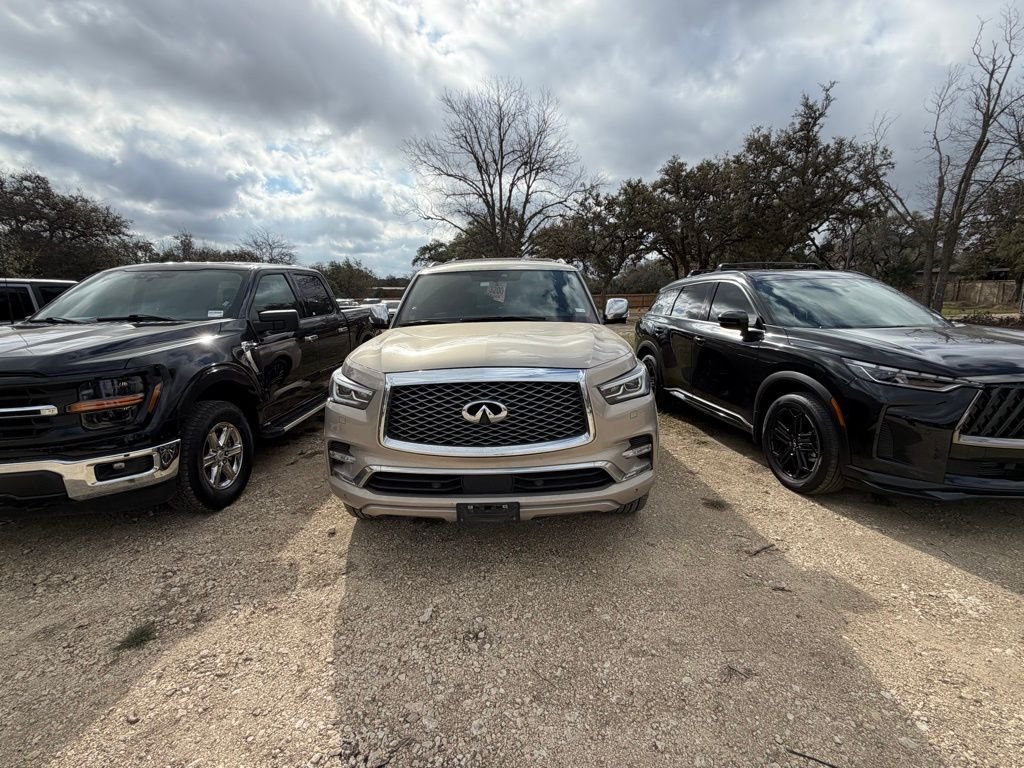 Wrapped in elegant Champagne Quartz over sumptuous Saddle Brown semi-aniline leather, this 1-owner 2021 INFINITI QX80 Sensory turns every errand into a first-class affair. Built to seat up to eight in genuine comfort while towing up to 8,500 pounds when duty calls, this flagship SUV delivers the kind of effortless luxury that San Antonio and Hill Country roads deserve. A robust 5.6-liter V8 churns out 400 horsepower and 413 lb-ft of torque, routed through a 7-speed automatic transmission to the rear wheels. The hydraulic body motion control system keeps the ride composed through every curve, while an integrated Class IV tow hitch with 7-pin wiring harness stands ready for boats, trailers, and weekend toys. At Principle INFINITI of Boerne, we believe every guest deserves true Texas Hill Country hospitality. Call 210-477-1794 or visit us in Boerne to experience this QX80 Sensory for yourself. Proudly serving San Antonio, New Braunfels, Kerrville, and the entire Texas Hill Country region.