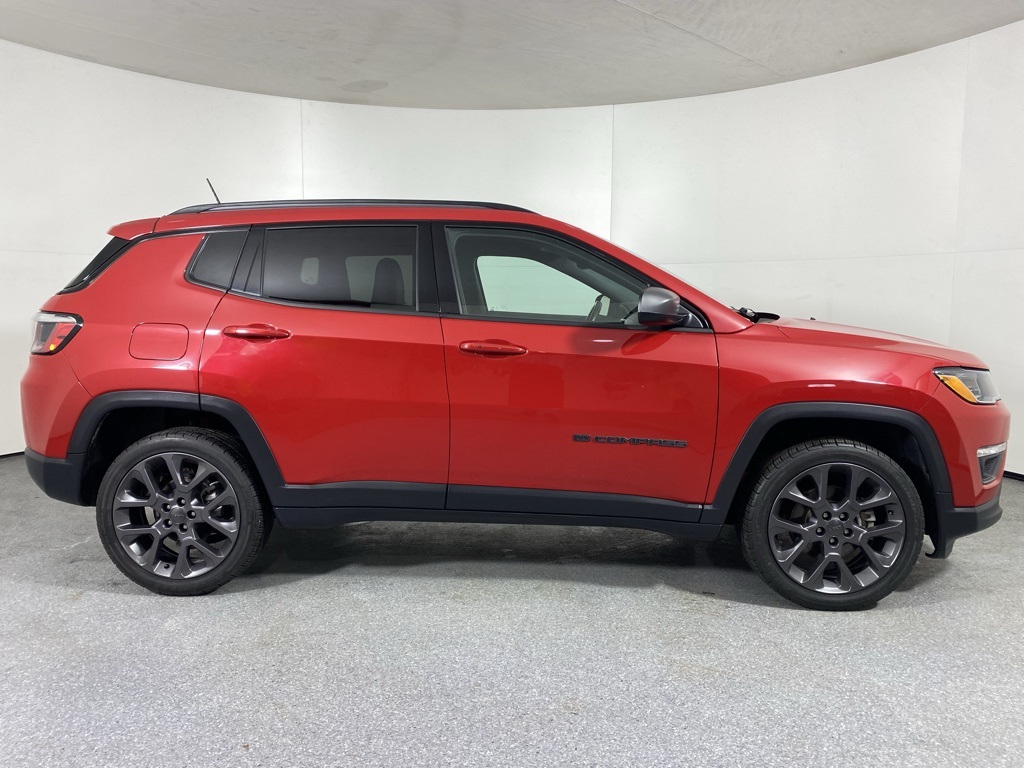 The pre-owned 2021 Jeep Compass 80th Special Edition, available at Jaguar Land Rover Schaumburg, IL, 60194, is a striking and well-equipped SUV with 62,256 miles on the odometer. Its Redline Pearl Coat exterior paint is beautifully contrasted by the Black Leather interior, creating a sophisticated and eye-catching appearance. This special edition commemorates the Jeep brand's legacy with unique badging and a refined overall aesthetic. Further enhancing its appeal are the additional options, including the 80th Anniversary Convenience Group, which adds a Heated Steering Wheel and Seats, and a practical Power Liftgate. Performance is delivered by the capable 2.4-liter Tiger shark four-cylinder engine, which produces 180 horsepower and 175 lb-ft of torque. Paired with a smooth-shifting automatic transmission (a 9-speed automatic for 4x4 models), this powertrain offers a good balance of everyday drivability and efficiency. For those looking to venture off the beaten path, the Jeep Compass offers an available 4x4 system with the Selec-Terrain Traction Management System, allowing the driver to optimize performance for various conditions like Auto, Snow, Sand, and Mud. The Design of the 80th Special Edition elevates the Compass's contemporary Jeep styling. Outside, it features unique Granite Crystal-finished 19-inch aluminum wheels and Neutral Gray accents on the grille rings, fog lamp bezels, and badging. Inside, the cabin welcomes occupants with 80th Edition Leather Seats and Light Tungsten accent stitching, complemented by Piano Black and Anodized Gun Metal accents for a premium feel. The commemorative badging further solidifies its collector's edition status. For Technology, this Compass is equipped with the Uconnect infotainment system featuring an 8.4-inch touchscreen display, which includes GPS Navigation, Apple CarPlay, and Android Auto integration. The system is intuitive and responsive, providing seamless access to media, communication, and navigation. Additional technology includes a 7-inch Thin-Film-Transistor (TFT) color driver information display in the instrument cluster and available SiriusXM satellite radio. The Compass is engineered with numerous Advanced Safety Features for peace of mind. Convenience and Comfort are key highlights, especially with the added 80th Anniversary Convenience Group. This package ensures year-round comfort with Heated Front Seats and a Heated Steering Wheel—perfect for cold Illinois mornings. The Power Liftgate adds substantial convenience for loading and unloading cargo. Other thoughtful features include an available remote engine start system, dual-zone automatic temperature control, and a power-adjustable driver's seat.