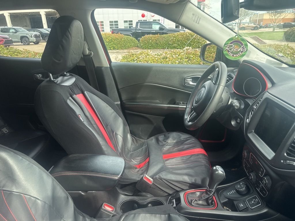 2021 Jeep Compass Trailhawk 22/30 City/Highway MPG. Trailhawk trim = true off-road capability. 4WD system ready for mud, trails, and bad weather. Advanced driver-assist safety features. No accident history. Modern tech with Apple CarPlay & Android Auto.