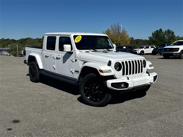 This 2021 Jeep Gladiator High Altitude was recently traded in by our store here in Dickson. This vehicle grew up in Indiana. Take adventure and luxury to the next level in this pre-owned 2021 Jeep Gladiator High Altitude the ultimate combination of open-air freedom, premium comfort, and legendary Jeep capability. Powered by a 3.6L V6 engine paired with an 8-speed automatic transmission, this Gladiator delivers confident performance on and off the road. The High Altitude trim stands out with its refined styling and upscale features. Enjoy a leather-trimmed interior, heated front seats and steering wheel, Uconnect 4C NAV with 8.4-inch touchscreen, and premium Alpine sound system. The body-color hardtop and fender flares, 20-inch gloss black wheels, and LED lighting package give it a bold, sophisticated look that's all Jeep. Whether you're towing, trail riding, or cruising through town, this 2021 Gladiator High Altitude brings exceptional versatility and comfort to every drive. With its blend of rugged utility and modern luxury, this 2021 Jeep Gladiator High Altitude is ready to elevate your next adventure.