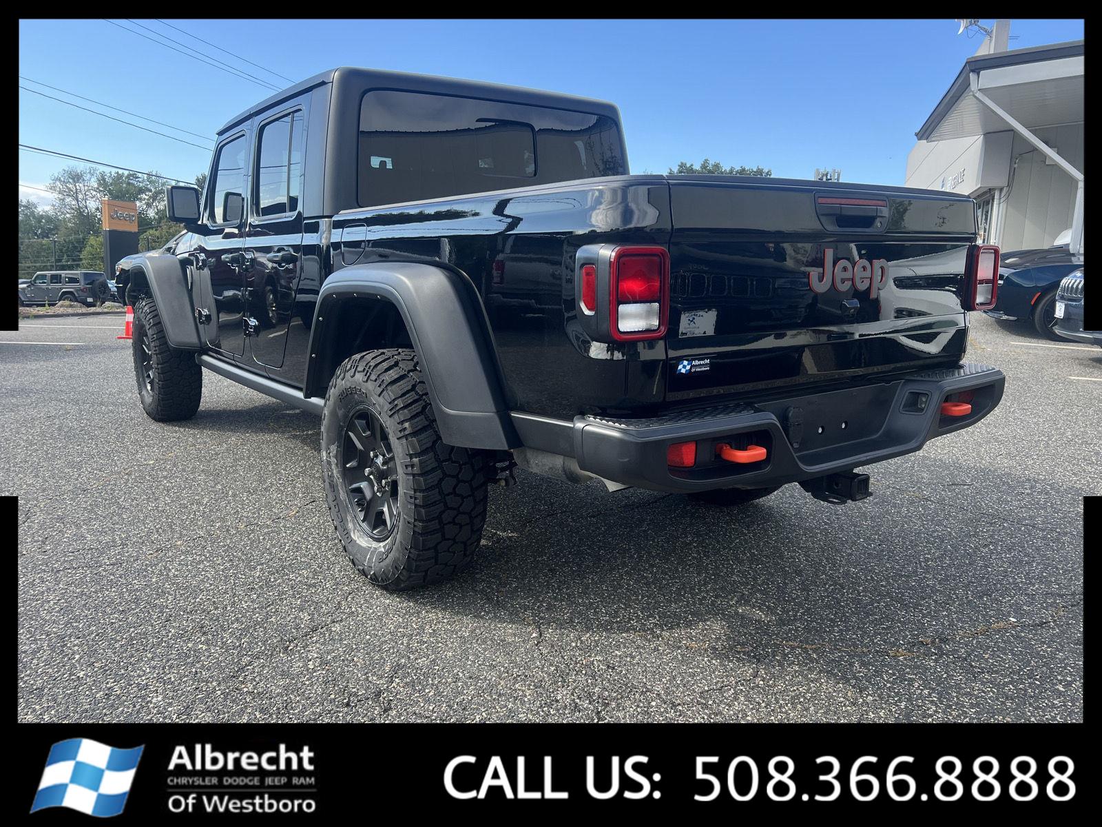 This 2021 Jeep Gladiator Mojave, has a Black Clearcoat exterior and a Black interior color. 30,834 miles. Stock Number P1685. You can connect with us by calling 508-366-8888. At Albrecht Chrysler Dodge Jeep RAM of Westboro, we're here to Serve you! Our staff is 100% dedicated to customer satisfaction and we understand that you need clear, transparent information throughout the car buying process. With our live market pricing philosophy, we offer the right cars at the right price, and the transparency to back it up!