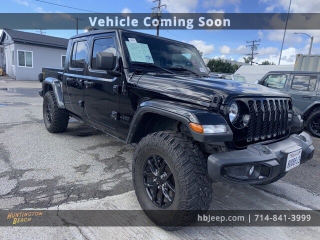 2021 Jeep Gladiator Black Clearcoat 8-Speed Automatic 3.0L V6 Turbodiesel Bluetooth wireless / hands free, navigation/GPS, back up camera, 7.0" touch screen display, AM/FM radio, Apple CarPlay, automatic headlamps, Black 3-Piece Hard Top, Black Grille, Black Trail Rated Badge, Body Color Fender Flares (2-Piece), California Edition Package, Cluster 7.0" TFT Color Display, Convenience Group, Daytime Running Lamp System, Deep Tint Sunscreen Windows, Freedom Panel Storage Bag, Front 1-Touch Down Power Windows, Gloss Black Instrument Panel Bezels, Leather Wrapped Steering Wheel, Mold In Color Bumper w/Gloss Black, Normal Duty Plus Suspension, Power Heated Mirrors, Power Tailgate Lock, Quick Order Package 26T California Edition, Rear Sliding Window, Rear Window Defroster, Remote Keyless Entry, Security Alarm, Selectable Tire Fill Alert, Speed Sensitive Power Locks, Sun Visors w/Illuminated Vanity Mirrors, Technology Group, Technology Group (DISC), Trailer Tow Package, Universal Garage Door Opener, Wheels: 17" x 7.5" Gloss Black Aluminum. 22/28 City/Highway MPG. This vehicle is coming soon, it may not be available for show or test drive. This vehicle is going through a safety inspection and if necessary a smog test. Pending inspection, vehicle may not become available for sale. We are located at: 16701 Beach Blvd, Huntington Beach, CA 92647.