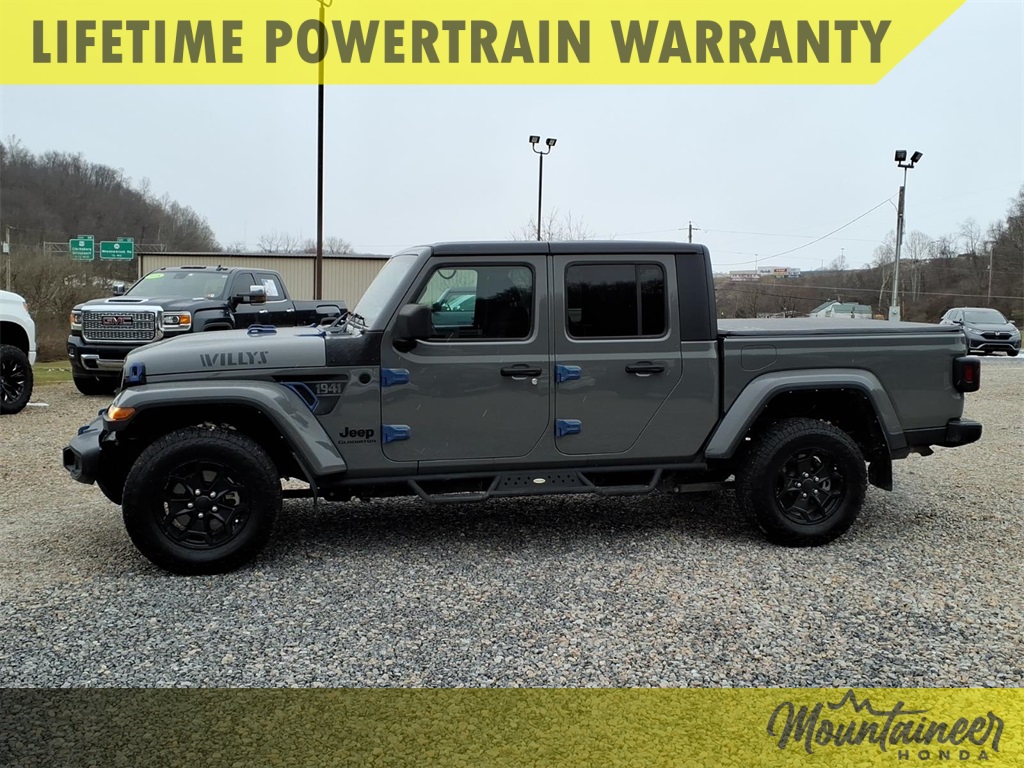 Sting-Gray Clearcoat 2021 Jeep Gladiator Willys 4WD 8-Speed Automatic 3.6L V6 24V VVT. All Cars & Trucks sold at Straub Automotive qualify for the Moutaineer Honda Advantage which is a series of "perks & discounts" available exclusively to our valued clients & friends. They include: FREE Exterior Car Wash with EVERY Service (Weather Permitting), FREE Shuttle Service within a 15-mile radius of any of our dealerships, $10 Daily Rental Vehicles with qualified Service Repairs, Discounts on "do-it-yourself" parts, FACTORY TRAINED & CERTIFIED Technicians, Moutaineer Honda's Sales & Service Satisfaction Guarantee, State-of-the-Art Dealership Facilities, FREE WIFI when on dealership grounds, FREE Ownership Reward Points for Nissan, EASY & Convenient Service Scheduling, EXPRESS SERVICE, and much much more!
