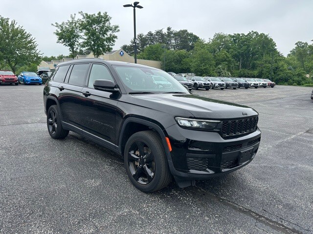 CARFAX One-Owner. Clean CARFAX. Diamond Black Crystal Pearlcoat 2021 Jeep Grand Cherokee L Altitude 4WD 3.6L V6 24V VVT. Fresh Oil Change. The 2021 Jeep Grand Cherokee L Altitude brings legendary Jeep performance to a spacious, three-row SUV with bold styling and premium comfort. Whether you're navigating city streets or heading off the beaten path, the Grand Cherokee L Altitude is designed to handle it all with room for the whole family. Powered by a 3.6L Pentastar V6 engine delivering 290 horsepower and 257 lb-ft of torque, this SUV offers a smooth, confident ride paired with an 8-speed automatic transmission. Available 4x4 capability ensures all-weather confidence and Jeep's trademark off-road readiness, while offering impressive towing capacity for your weekend toys. The Altitude trim stands out with blacked-out exterior accents, 20-inch gloss black wheels, and a sleek monochromatic look. LED lighting, a power liftgate, and bold front fascia complete its commanding presence. Inside, you'll find three rows of seating with room for up to seven passengers, premium black Capri leatherette seats with suede inserts, and heated front seats. The cabin is thoughtfully designed for comfort and practicality, featuring tri-zone automatic climate control, a power driver's seat, and flexible cargo space with fold-flat rear seating. Tech features include the Uconnect 5 system with an 8.4-inch touchscreen, Apple CarPlay, Android Auto, voice command, Bluetooth, and multiple USB ports. Remote start and keyless entry add daily convenience, while a rearview camera, blind-spot monitoring, and rear cross-traffic alert provide added peace of mind. With rugged capability, upscale style, and the versatility of three-row seating, the 2021 Jeep Grand Cherokee L Altitude is the ideal SUV for drivers who demand performance and practicality without sacrificing bold design.