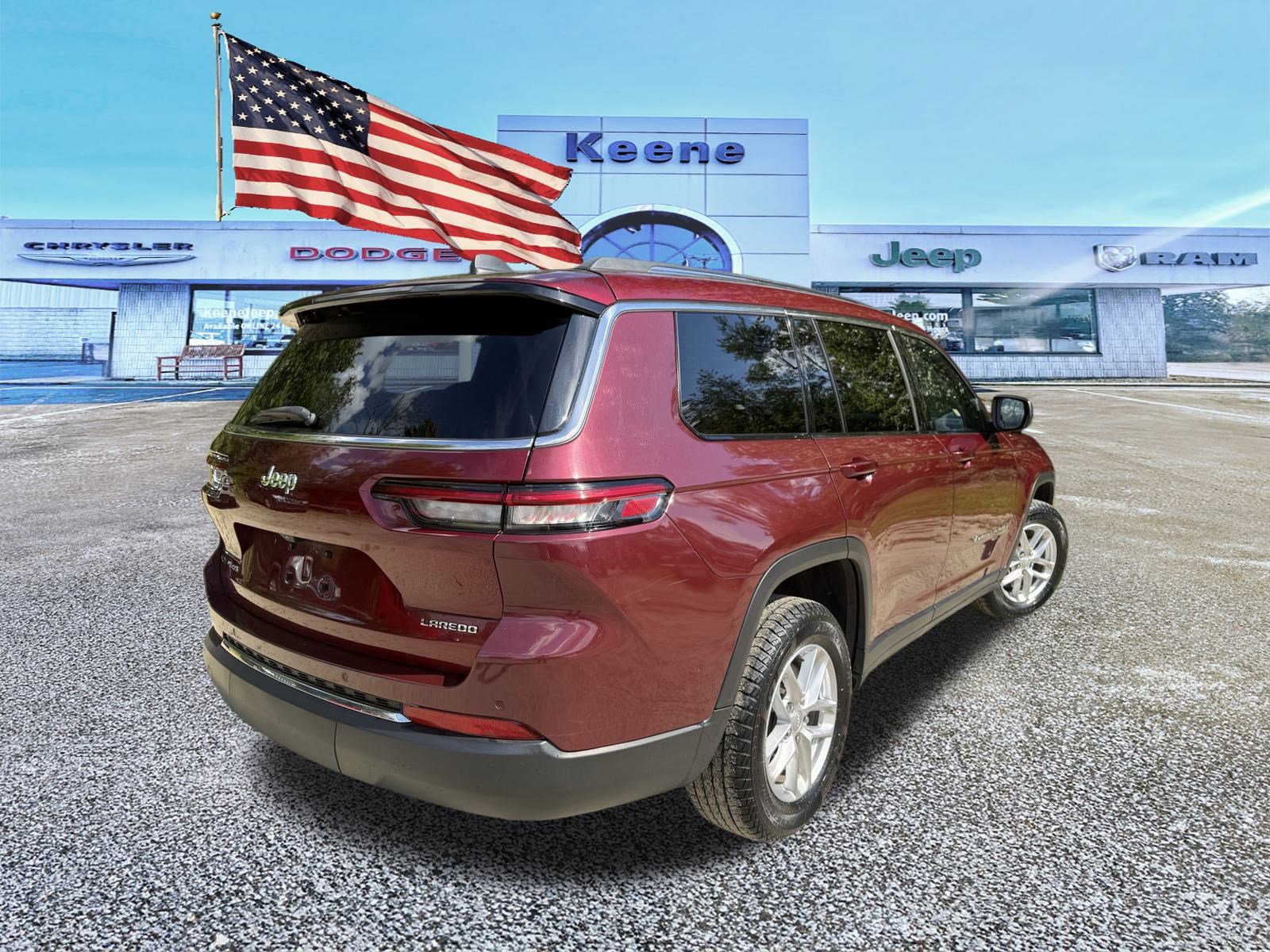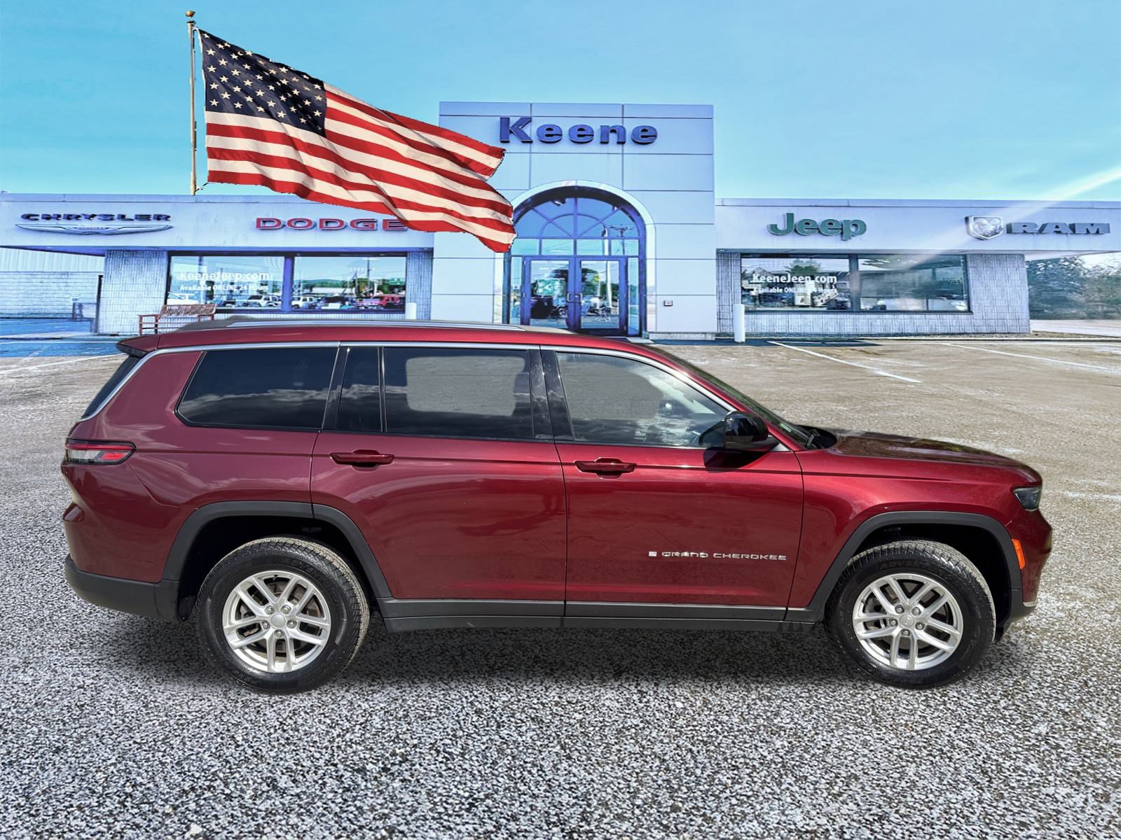 Call for availability 1-603-352-1357. Check out this 2021 Jeep Grand Cherokee L Laredo. Its Automatic transmission and Regular Unleaded V-6 3.6 L/220 engine will keep you going. This Jeep Grand Cherokee L features the following options: Velvet Red Pearlcoat, transmission: 8-Speed Automatic (850RE) (STD), Quick Order Package 22A -inc: Engine: 3.6L V6 24V VVT UPG I w/ESS, transmission: 8-Speed Automatic (850RE), power sunroof, Luxury Tech Group I -inc: SiriusXM Radio Service, selectable tire fill alert, remote start system, SiriusXM Satellite Radio, rain sensitive windshield wipers, wireless charging pad, heated front seats, for more info, call 800-643-2112, leather wrapped steering wheel, 3rd row charge-only USB ports, 115V auxiliary power outlet, heated steering wheel, power liftgate, global black, cloth seats, engine: 3.6L V6 24V VVT UPG I w/ESS (STD), wireless phone connectivity, wheels: 18 x 8.0 fully painted aluminum. Test drive this vehicle at Keane Chrysler, 410 Winchester.