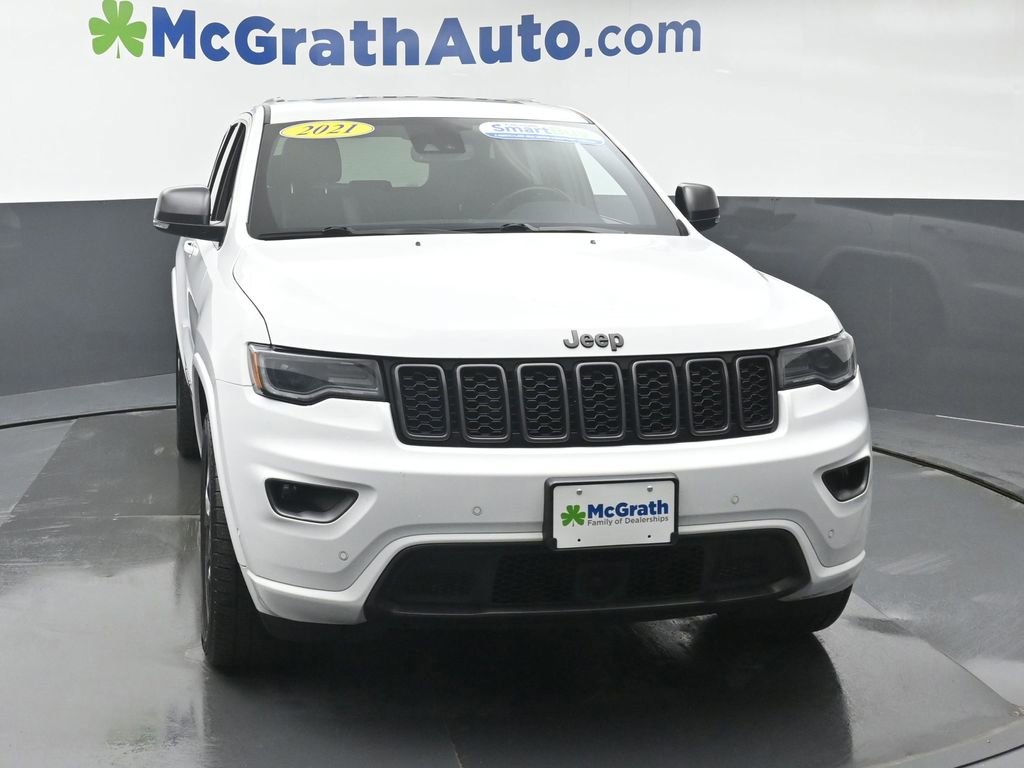 4WD. Carfax One-Owner. Clean Carfax. Certification Program Details: McGrath Certified Benefits: Free Vehicle History Report, 106 Point Full Vehicle Condition Inspection, Like it or Exchange it! Three Day Policy. 2021 Jeep Grand Cherokee 80th Anniversary Edition 3.6L V6 24V VVT 4WD. We're in the customer service business first, the car business second. Our goal is to offer our customers great vehicles at unmatched prices, but the car business isn't just about the product, it's about the people. Welcome to McGrath, your destination for award-winning automotive excellence! We were voted CBJ's 2024 #1 Coolest Place to Work and winner of 2024 Best of the Best Auto Dealer, Auto Service, and Fleet Dealer. We’re proud to deliver unmatched quality and service. With over 11,000 5-star Google reviews, our customers’ trust and satisfaction drive everything we do. Whether you’re buying, servicing, or building your fleet, experience why McGrath is the top choice for all your automotive needs! If we aren't making our customers happy, we aren't in business. It's as simple as that, and we intend to deliver on the promise: Get More with McGrath. Prices may change at any time and are subject to availability and prior sale. Taxes, title, license fees, and a $180 documentation fee are not included. Pricing reflects all applicable rebates and incentives assigned to the dealer. Example payments are estimates; actual terms vary based on credit approval. APR and payment estimates apply to qualified buyers, not all buyers qualify for advertised rates. Factory cash incentives may not be combined with promotional APR. Fuel economy ratings and driving range figures are based on EPA estimates for new vehicles, and actual mileage and range may vary. Some in-stock vehicles may include a $1,295 Clear Guard Protection package.