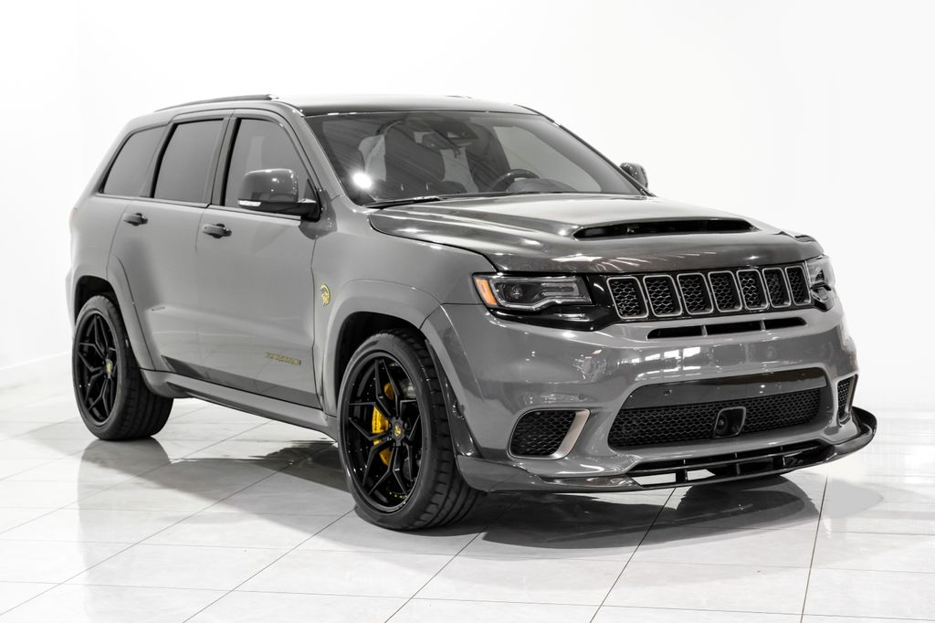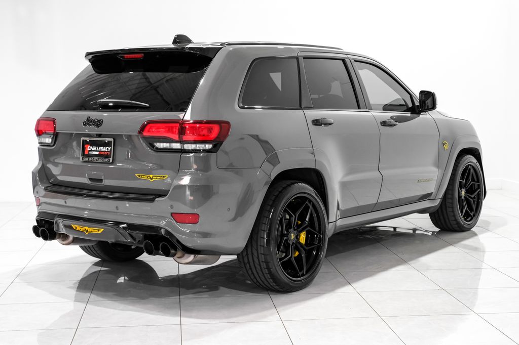 Clean Carfax. Sting-Gray Clearcoat 2021 Jeep Grand Cherokee Trackhawk 4WD 8-Speed Automatic 6.2L Supercharged HEMI V8 SRT Sting-Gray Clear-Coal Exterior Paint, Rear DVD Entertainment Center, Signature Leather-Wrapped Interior Package, High Performance Audio, Red Seat Belts, Dual-Pane Panoramic Sunroof, Black Roof, Compact Spare Tire, 4WD. Welcome to One Legacy Motors our legacy starts with you. At One Legacy Motor, we believe in more than just selling cars-we're about building lifelong relationships based on trust and integrity. Each vehicle in our collection is meticulously hand-picked by one of the owners themselves to ensure it meets our high standards of quality, performance and reliability. When you choose One Legacy Motors, you're not just getting a car; you're becoming part of a legacy of excellence, where customer satisfaction is priority number 1. Our staff is dedicated to providing the best service in the automotive industry, ensuring your experience with us is seamless, transparent and exceptional. Welcome to a dealership where your peace of mind and satisfaction drives us forward. Recent Arrival! Odometer is 26704 miles below market average! Recent Arrival!