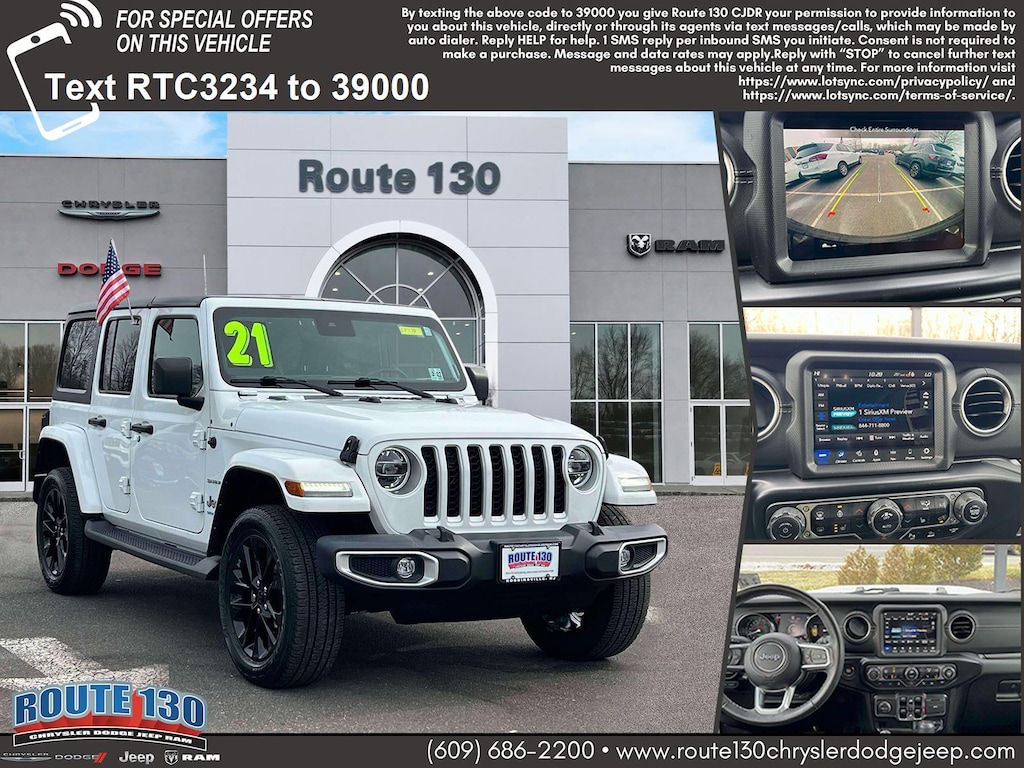 After you get a look at this beautiful 2021 Jeep Wrangler 4xe, you'll wonder what took you so long to go check it out! This Wrangler 4xe has 17937 miles, and it has plenty more to go with you behind the wheel. We never lose a deal on price! We encourage you to experience this Wrangler 4xe for yourself. Route 130 Chrysler Dodge Jeep Ram is dedicated to your satisfaction before, during, and after your purchase. We'll go the extra mile to take care of you.