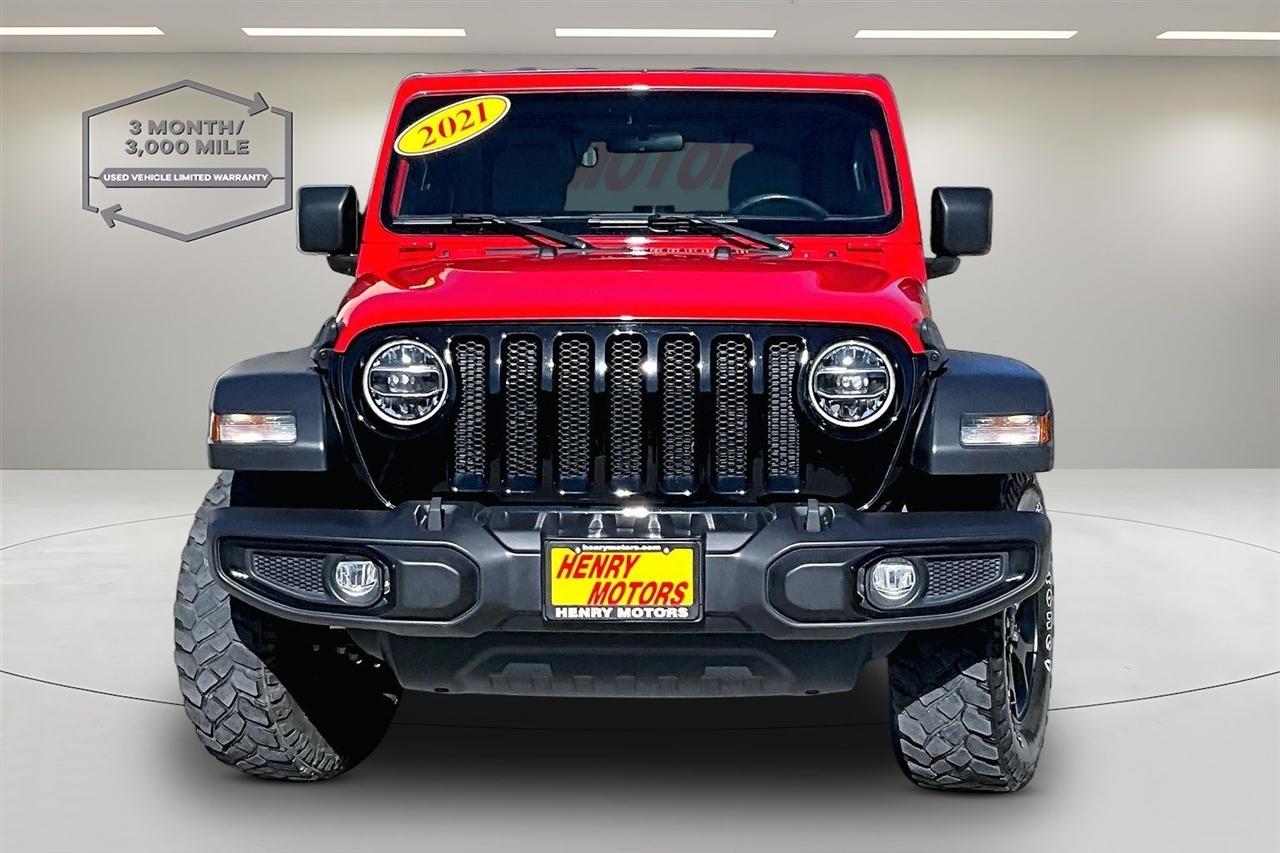 Buckle up and prepare for adventure with this eye-catching Red 2021 Jeep Wrangler! This rugged beauty is not just a car, it's a lifestyle choice. With its iconic design and powerful performance, you'll be turning heads wherever you go. Whether you're cruising through the city streets or tackling rough terrain off-road, this Jeep Wrangler is up for the challenge. But wait, the fun doesn't stop there! This Red 2021 Jeep Wrangler comes with a Carfax report available, giving you peace of mind and confidence in your purchase. You'll know exactly what you're getting with this well-maintained and reliable vehicle. Ready to hit the road? Climb into the spacious interior and you'll find comfort and convenience at every turn. Blast your favorite tunes through the premium sound system as you enjoy the smooth ride offered by this Jeep's robust suspension. The possibilities are endless with this versatile vehicle - whether you're loading up for a weekend camping trip or simply running errands around town, the Jeep Wrangler has got you covered. So why settle for an ordinary car when you can have the extraordinary experience of driving a Jeep Wrangler? Take your driving experience to the next level with this Red 2021 beauty - it's not just a car, it's a statement. Plus, with the Carfax report available, you can purchase with confidence and get ready to enjoy all the adventures that await you.