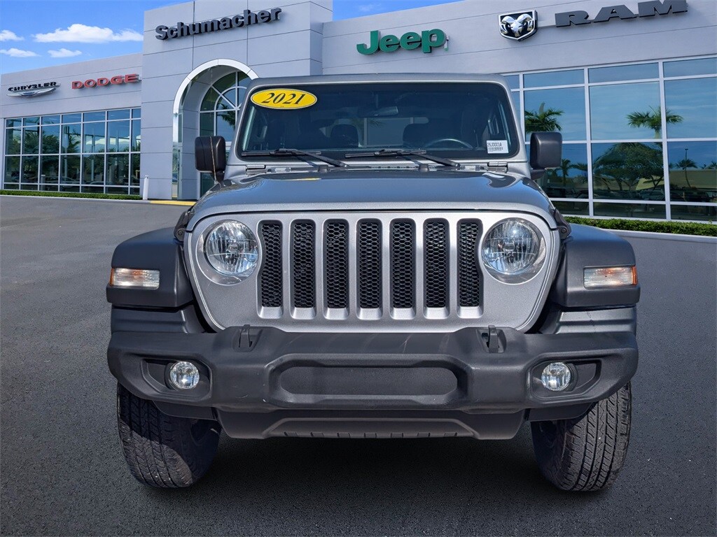 Welcome to Schumacher Automotive Delray, where buying a pre-owned vehicle is more than a transaction, it's joining our family. As a proud, family-owned business located at 2102 South Federal Highway in Delray Beach, Florida, our mission is built entirely around your satisfaction and helping you find the perfect vehicle to fit your life and budget. We understand the importance of trust and transparency in every purchase, and that's why we invite you to experience the Schumacher difference for yourself. Come join the family! Priced below KBB Fair Purchase Price! 2021 Jeep Wrangler Sport S Billet Silver Metallic Clearcoat 2.0L I4 DOHC 4WD Clean CARFAX. CARFAX One-Owner. Act fast—our aggressively priced, high-quality pre-owned vehicles at Schumacher Automotive Delray simply do not last; visit us today at 2102 South Federal Highway, Delray Beach, Florida 33483, or contact us right away to secure yours before it's gone!