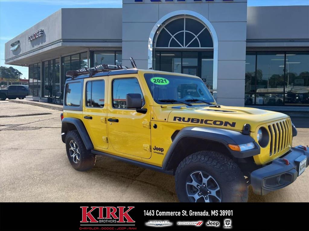 Our experienced Kirk Brothers CDJR of Sunset team is excited to assist you in your next vehicle purchase. Welcome to the best source for online deals. At Kirk Brothers CDJR of Sunset we understand that delivering top quality service is the only way to earn business. We promise to make your next car buying experience efficient and relaxed. Kirk Brothers CDJR of Sunset mission is to ensure all our customers have a positive auto buying experience and are completely satisfied with their new vehicle. Best Price Ready for trails and daily drives, this 2021 Jeep Wrangler Unlimited Rubicon combines legendary off-road capability with modern comfort. Powered by a fuel-efficient 2.0L 4-cylinder gasoline engine and full-time 4WD, the Rubicon is engineered to tackle rough terrain while providing confident highway performance. The Rubicon trim adds heavy-duty off-road features, enhanced suspension, and rugged styling that make it a top choice for adventure seekers. Inside, enjoy convenience and connectivity with Hands Free Bluetooth for safe phone and audio control on the go. Automatic Climate Control keeps the cabin comfortable in any weather, while the Back-Up Camera improves visibility and parking confidence. The vehicle includes an AutoCheck Clean Report, giving added assurance about its history. Whether you're navigating rocky trails or commuting through Grenada, MS, this Jeep Wrangler Unlimited Rubicon balances capability and comfort. The four-door design provides ample passenger space and cargo versatility, ideal for weekend gear or family outings. With the best price available locally, this Rubicon presents exceptional value for buyers seeking a reliable, off-road-ready SUV. Contact us to schedule a test drive in Grenada, MS, and experience the 2021 Jeep Wrangler Unlimited Rubicon's rugged performance and modern amenities for yourself. Competitive pricing and ready availability make this an outstanding choice.