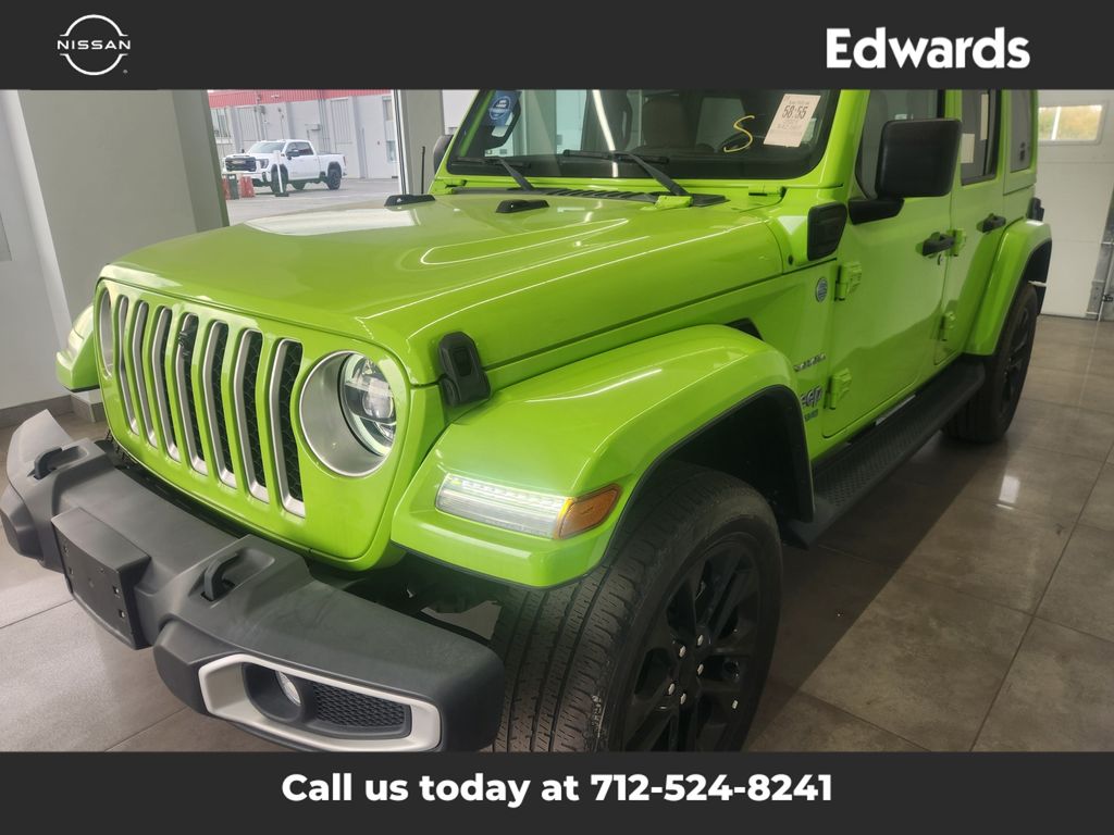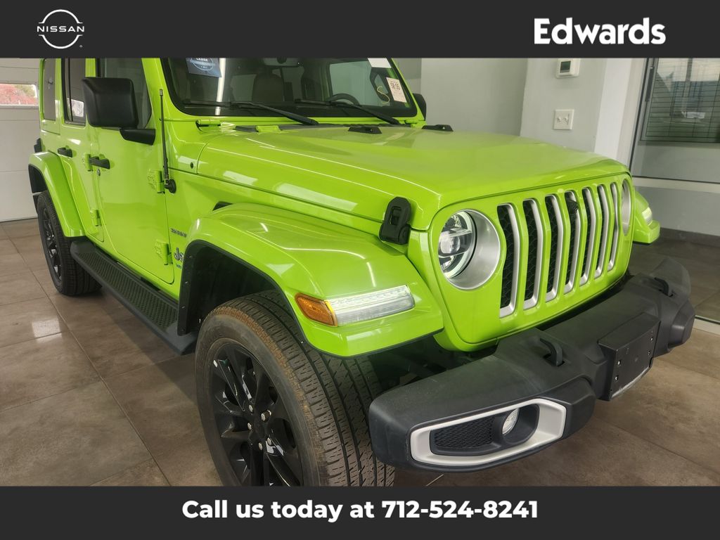 Plug in our Certified, One Owner, Accident Free 2021 Jeep Wrangler 4xe Sahara 4 Door 4X4 in Gecko Clearcoat and enjoy hybrid fun you never thought possible! Powered by a TurboCharged 2.0 Liter 4 Cylinder and 2 Electric Motors offering a combined 375hp tethered to an 8 Speed Automatic transmission. This Four Wheel Drive SUV can go nearly 21miles on a single charge of electricity and then keep going for hundreds of more miles in gas-hybrid mode at nearly 20mpg combined. And you can still count on Trail Rated Jeep capability combined with iconic styling from LED lighting, fog lamps, side steps, bold fender flares, and alloy wheels. The removable top and doors, plus a fold-down windshield, add unrivaled open-air excitement. Our Sahara cabin is your service with heated leather front seats, a heated leather-wrapped steering wheel, power accessories, automatic climate control, cruise control, and 12V/115V power outlets that come in handy on the trail or off. Digital convenience comes standard with an 8.4-inch touchscreen, WiFi compatibility, Apple CarPlay/Android Auto, Bluetooth, and an Alpine sound system. The world is waiting, so get out there and go! Move with confidence knowing Jeep helps keep you out of harm's way with a backup camera, ABS, stability/traction control, hill-start assist, tire-pressure monitoring, advanced airbags, and more. Drive our Wrangler 4xe Sahara and plug into more adventure! Save this Page and Call for Availability. We Know You Will Enjoy Your Test Drive Towards Ownership!