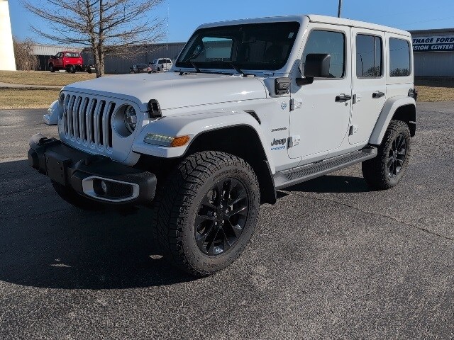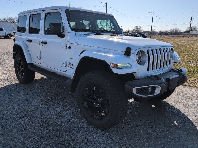 Bright White Clearcoat 2021 Jeep Wrangler Unlimited Sahara 4xe 4WD 8-Speed Automatic 2.0L I4 DOHC 2.0L I4 DOHC, 3.73 Rear Axle Ratio, ABS brakes, Air Conditioning, Alloy wheels, Apple CarPlay/Android Auto, Auto-dimming Rear-View mirror, Automatic temperature control, Brake assist, Cold Weather Group, Compass, Delay-off headlights, Driver door bin, Driver vanity mirror, Electronic Stability Control, Front Bucket Seats, Front Center Armrest w/Storage, Front dual zone A/C, Front fog lights, Front reading lights, Fully automatic headlights, Garage door transmitter, Heated door mirrors, Heated Front Seats, Heated Steering Wheel, Illuminated entry, Leather Shift Knob, Leather steering wheel, Leather Trimmed Seats w/Sahara Logo, Leather Wrapped Park Brake Handle, Low tire pressure warning, Navigation System, Outside temperature display, Panic alarm, ParkView Rear Back-Up Camera, Passenger door bin, Passenger vanity mirror, Power door mirrors, Power steering, Power windows, Quick Order Package 29P, Radio: Uconnect 4C Nav w/8.4" Display, Rear reading lights, Rear seat center armrest, Remote keyless entry, Remote Start System, Security system, Speed control, Split folding rear seat, Sport Suspension, Steering wheel mounted audio controls, Tachometer, Telescoping steering wheel, Tilt steering wheel, Traction control, Trip computer, Variably intermittent wipers, Voltmeter, Wheels: 20" x 8" Fully Painted Aluminum. Wood Motor is proud to serve our communities in Southwest Missouri, Northwest Arkansas, Northeast Oklahoma, and Southeast Kansas. The ultimate commitment to our customers is to deliver an experience that's with ease in negotiation, a transparent buying process, while also earning a customer for life. Recent Arrival! Odometer is 4592 miles below market average!