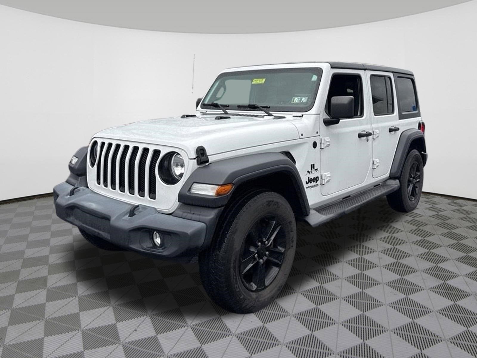 A must see!! 2021 Jeep Wrangler Unlimited Sport Altitude model, new car trade, local trade, automatic transmission, 4x4, back-up camera, Bluetooth, AM-FM radio, heated front seats, alloy wheels, completely serviced, clean inside and out, Piazza Preferred Powertrain Warranty included, market base priced to sell quick, hurry in-will not last at this price, buy with complete confidence here at Piazza Honda of Pottstown. Clean CARFAX. Bright White Clearcoat 2021 Jeep Wrangler Unlimited Sport Altitude 4WD 8-Speed Automatic 2.0L I4 DOHC.