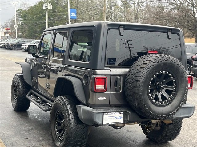 One owner, backup camera, cruise control, keyless entry, multi-zone climate control, power locks, lift kit, power windows, steering wheel controls, premium wheels, clean Carfax/no accidents, USB/Handfree/Bluetooth/SYNC, Carfax certified, Wrangler Unlimited Sport S, 4D Sport Utility, 8-Speed Automatic, 4WD, Granite Crystal Metallic Clearcoat, Black Cloth. Mention this advertisement to receive the advertised price.