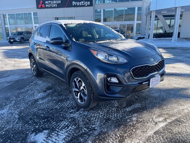 Pacific Blue 2021 Kia Sportage LX AWD 6-Speed Automatic Electronic with Overdrive 2.4L I4 DGI DOHC 16V Clean vehicle history report, local trade in, Four wheel independent suspension, Front Center Armrest, Front reading lights, Illuminated entry, Outside temperature display, Overhead airbag, Overhead console, Panic alarm, Radio: AM/FM Audio System, Rear seat center armrest, Speed control, Speed-sensing steering, Telescoping steering wheel, Tilt steering wheel. Prestige Kia is a locally owned western Wisconsin Kia car dealer that has been in business for over 20 years. Our Eau Claire car dealership proudly offers the full line of award-winning new Kia vehicles and a wide selection of top-quality pre-owned vehicles. Our highly-rated Parts and Service department is also located at this dealership.