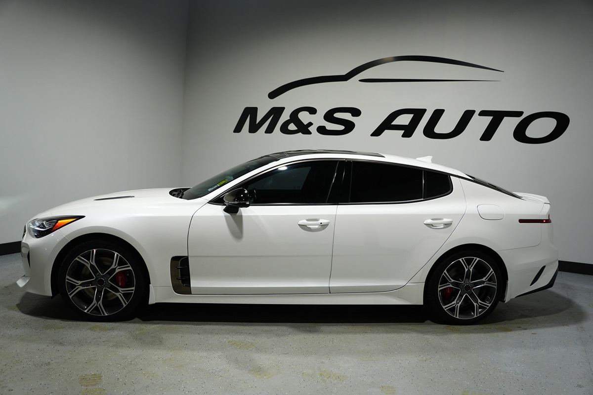 The 2021 Kia Stinger GT2 AWD is a sophisticated blend of style, performance, and advanced technology, enveloped in a striking Snow White Pearl exterior. This head-turning sedan is designed for those who appreciate a combination of luxury and performance. At its heart, the Stinger boasts a powerful 3.3L 6-cylinder engine, delivering seamless power and exhilarating acceleration that complements its all-wheel-drive capability perfectly. The interior of the Stinger GT2 is equally captivating, featuring premium Black Nappa leather seat trim that exudes comfort and class. Advanced features such as the blind spot monitor, forward collision warning, and lane departure warning provide a reassuring sense of safety. Meanwhile, conveniences like the hands-free power liftgate and rain-sensing wipers ensure every driving experience is as smooth and enjoyable as possible. Premium amenities abound, with a high-quality sound system that envelops the cabin in rich audio, and LED headlights that light up the road with precision.