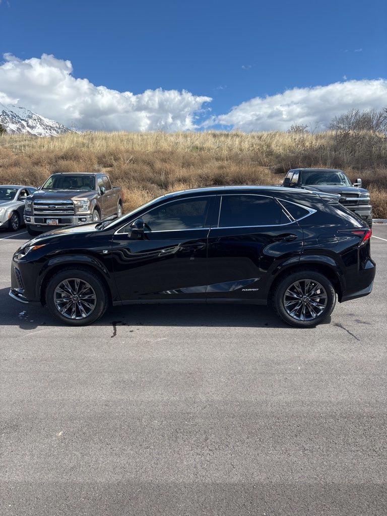 This vehicle is a used 2021 Lexus NX 300h F Sport Black Line. It features a hybrid engine and a sleek, comfortable interior with seating for five. The NX 300h offers great fuel economy and a smooth ride, making it a great choice for those who want luxury and efficiency in an SUV.