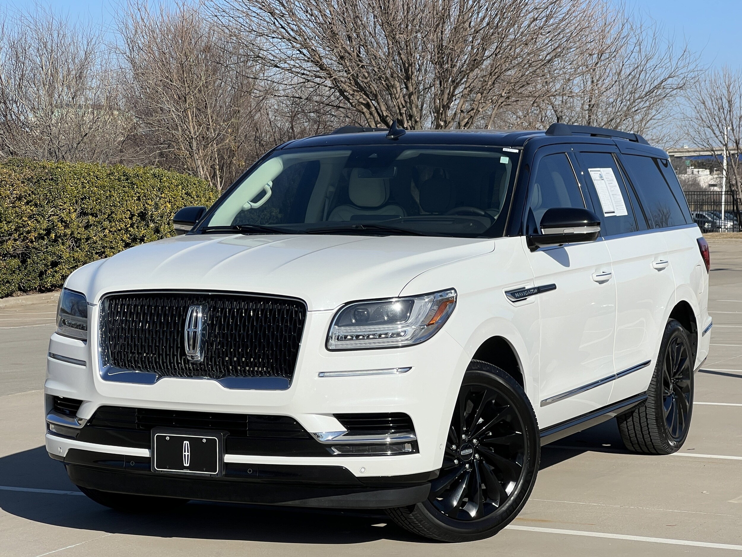 CARFAX One-Owner. Clean CARFAX. White 2021 Lincoln Navigator Black Label 4WD 10-Speed Automatic V6 Navigator Black Label, 4D Sport Utility, V6, 10-Speed Automatic, 4WD, White, Alpine Leather, 20 Speakers, 3rd row seats: split-bench, 4-Wheel Disc Brakes, ABS brakes, Adaptive suspension, Adjustable pedals, Air Conditioning, Alloy wheels, AM/FM radio: SiriusXM, Audio memory, Auto High-beam Headlights, Auto tilt-away steering wheel, Auto-dimming door mirrors, Auto-dimming Rear-View mirror, Auto-leveling suspension, Automatic temperature control, Bodyside moldings, Brake assist, Bumpers: body-color, Compass, Delay-off headlights, Driver door bin, Driver vanity mirror, Driver's Seat Mounted Armrest, Dual front impact airbags, Dual front side impact airbags, Electronic Stability Control, Emergency communication system: 911 Assist, Exterior Parking Camera Rear, Floor Carpet/Mats - Espresso w/Dinamica Suede, Four wheel independent suspension, Front anti-roll bar, Front Bucket Seats, Front dual zone A/C, Front fog lights, Front reading lights, Fully automatic headlights, Garage door transmitter, Genuine wood console insert, Genuine wood door panel insert, GVWR: 7,625 lbs Payload Package, Head restraints memory, Headliner - Alpine Dinamica Suede, Heads-Up Display, Heated door mirrors, Heated front seats, Heated rear seats, Heated steering wheel, HVAC memory, Illuminated entry, Knee airbag, Leather steering wheel, Leather-Wrapped Interior - Alpine/Espresso, Low tire pressure warning, Memory seat, Navigation System, Occupant sensing airbag, Outside temperature display, Overhead airbag, Overhead console, Panic alarm, Passenger door bin, Passenger seat mounted armrest, Passenger vanity mirror, Pedal memory, Power adjustable front head restraints, Power adjustable rear head restraints, Power door mirrors, Power driver seat, Power Liftgate, Power moonroof: Panoramic Vista Roof, Power passenger seat, Power steering, Power windows, Radio data system, Radio: Revel Ultima AM/FM/HD/MP3 Audio System, Rain sensing wipers, Rear air conditioning, Rear anti-roll bar, Rear audio controls, Rear reading lights, Rear window defroster, Rear window wiper, Reclining 3rd row seat.