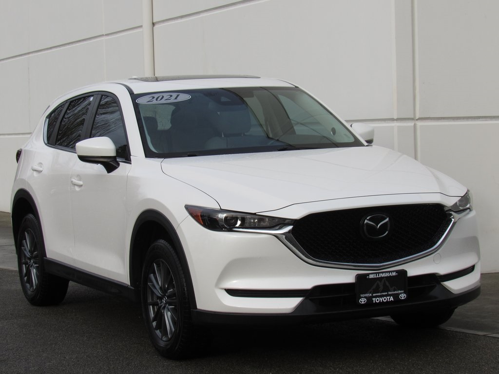 Recent Arrival! 24/30 City/Highway MPG Clean Carfax. Snowflake White Pearl Mica 2021 Mazda CX-5 Touring 4D Sport Utility AWD 6-Speed Automatic. FEEL CONFIDENT ABOUT YOUR CHOICE. Every vehicle comes with a thorough inspection report & Carfax history report. Many of our vehicles sell within the first 14 days so we highly encourage you to call to check availability. Visit us today at Toyota of Bellingham.