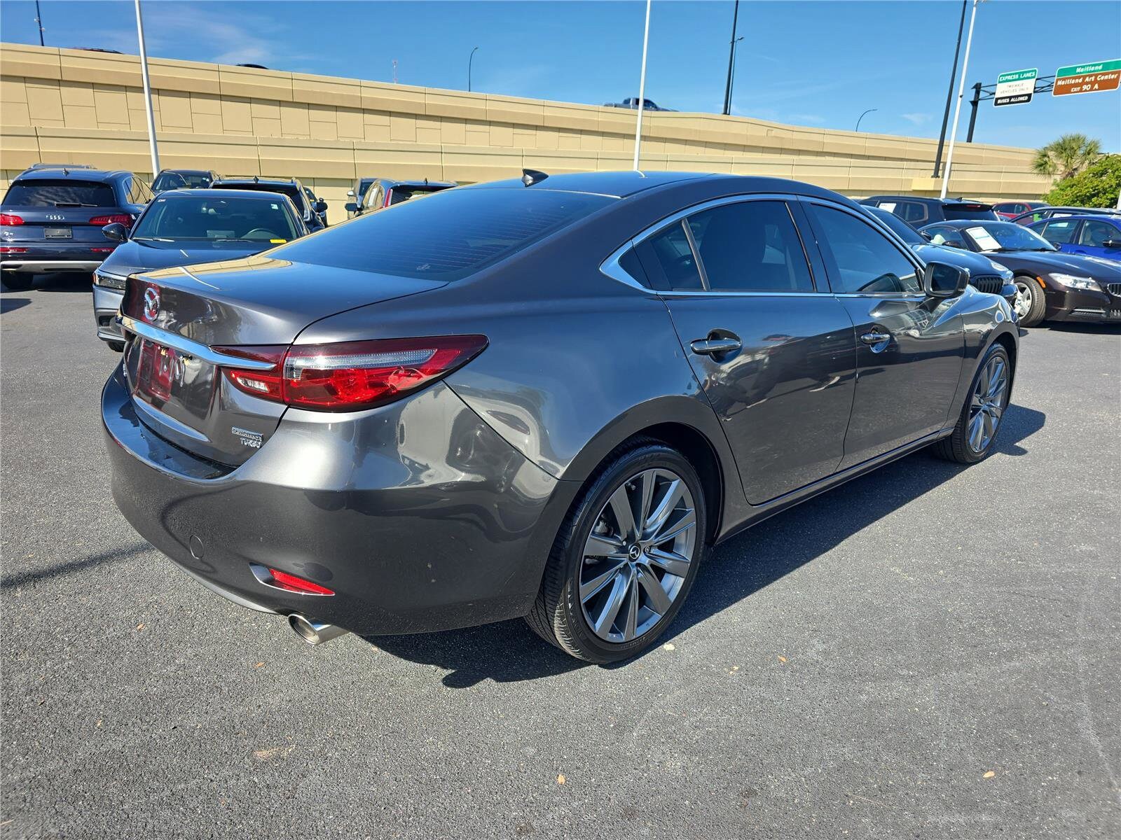 The 2021 Mazda Mazda6 Grand Touring Grand Touring Auto is a used vehicle located at Fields BMW Winter Park. It features a Machine Gray Metallic exterior and a black interior. The car is equipped with a turbocharged 2.5L I-4 engine, front-wheel drive, and a 6 speed automatic transmission. It offers a comfortable ride with seating for five, advanced safety features, and a premium Bose audio system. Please contact the store by email or phone for details and availability of incentives.