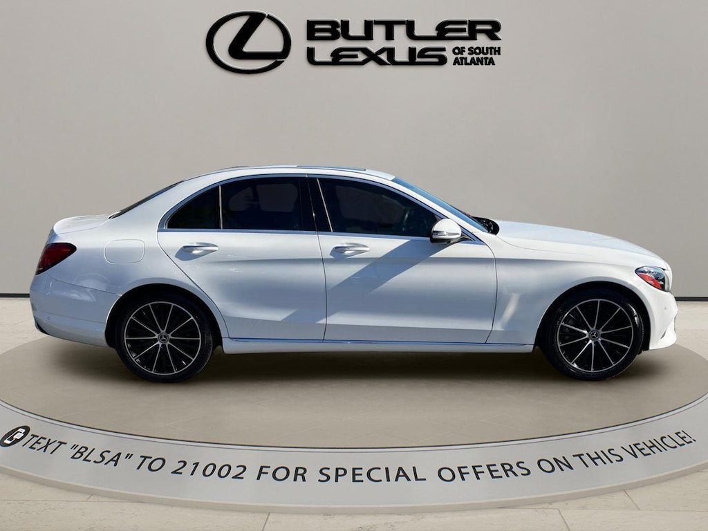 Thank you for choosing Butler Lexus of South Atlanta, this Polar White 2021 Mercedes-Benz C-Class C 300 is a great choice! Checkout the following: City 23/HWY 35. Parking Assistance Package ($1,150 value). PARKTRONIC with Active Parking Assist. Surround View System. Parking Damage Detection. Rear Cross Traffic Alert. Premium Package ($1,500 value). SiriusXM Satellite Radio. Burmester Surround Sound System. 64-Color Ambient Lighting. Illuminated Door Sills. Safety and Security. Forward collision mitigation - Forward thinking. You look away for just a second and suddenly the vehicle in front of you has stopped. That's when the forward collision mitigation system comes to life. When it senses an impending impact, it will activate a combination of features to help prevent or reduce the severity of an accident. Forward collision mitigation is always looking ahead. Pedestrian impact prevention - An extra step toward safety. Pedestrians don't always stop, look, and listen, but with Pedestrian Impact Prevention, your vehicle is equipped to better see them and avoid them. This system constantly monitors the road ahead to identify and track pedestrians. It projects that image to an interior display screen, AND should an impact become likely, Pedestrian impact prevention takes steps to avoid a collision. Rear camera - Watching your back! The rear camera helps you see obstacles and hazards you otherwise couldn't by showing enhanced images of what is behind you. The rear camera is an extra set of eyes that's both convenient and safe. Technology and Telematics. Smart device mirroring - Smartphone, meet smart car. You can control your device through your vehicle's infotainment system. Smart device mirroring brings together safety and convenience by making it easier to find what you're looking for while keeping your eyes on the road. Mobile hotspot - WiFi on the fly. Connect your devices to the Internet through your vehicle's private mobile hotspot and take the internet wherever your journey takes you, without eating up your data allowance. Find the hotspot with mobile hotspot.