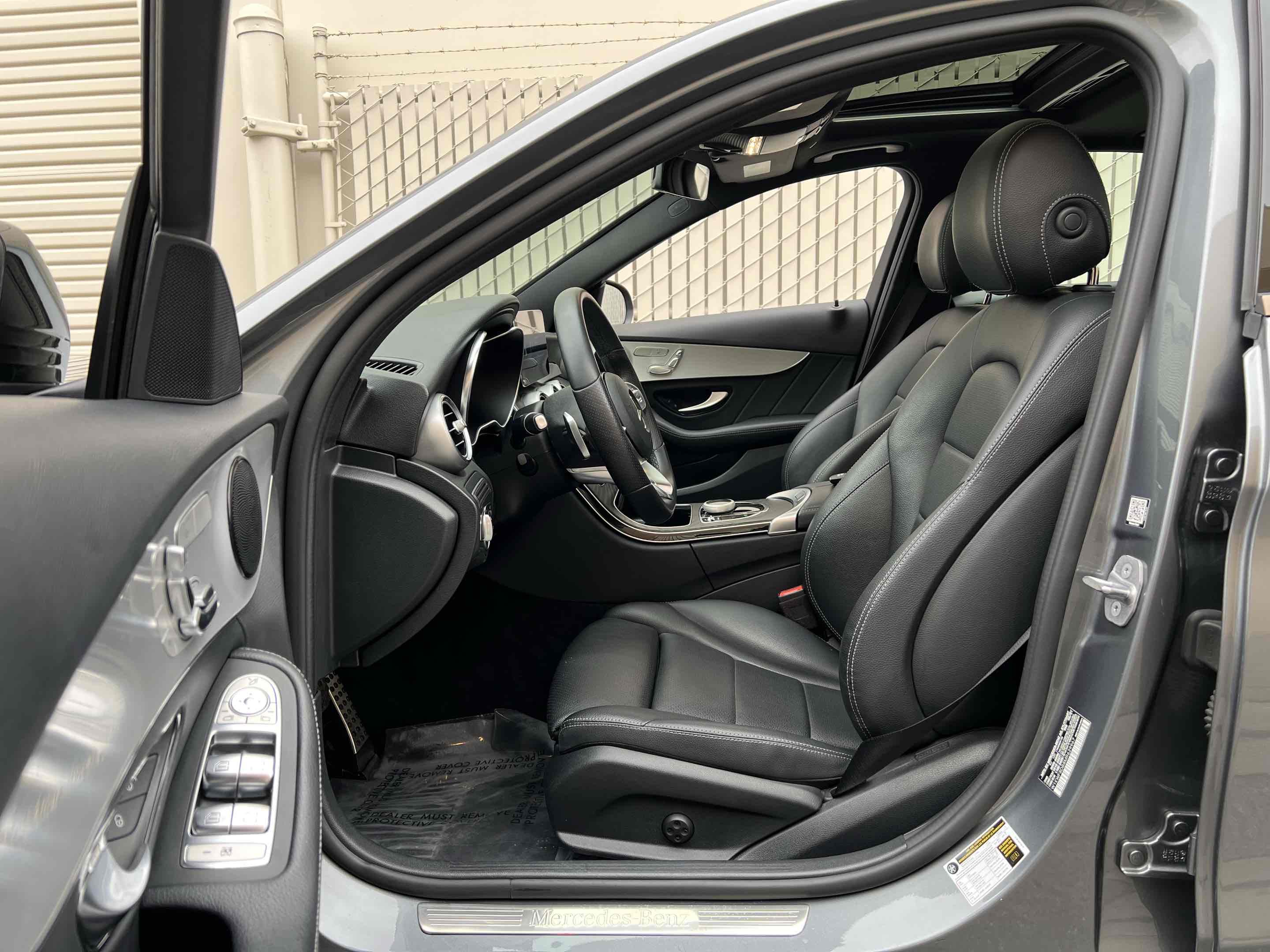The 2021 Mercedes-Benz C 300 Sedan in Selenite Grey Metallic embodies refinement and performance, quintessentially representing the brand's luxury ethos. Its sleek silhouette is accentuated by the AMG Line package, featuring dynamic styling elements that enhance its aesthetic appeal. Elevating its presence on the road, the sedan is equipped with striking 19'' AMG multispoke wheels, complete with black accents, which perfectly contrast the sophisticated grey exterior. The Night Package adds a bold touch, incorporating high-gloss black elements that amplify the vehicle's sporty allure. Inside, the C 300 Sedan offers a sanctuary of comfort with its meticulously crafted Black interior. High-quality materials and precise attention to detail enhance the cabin’s atmosphere, creating an ambiance of understated elegance. The interior design seamlessly integrates with advanced technology, offering a driver-centric experience that is both intuitive and luxurious. The spacious layout ensures a comfortable journey for all passengers, making it suitable for both daily commutes and longer drives. Beneath its sleek exterior lies a 2.0L 4-cylinder engine that provides a perfect balance of power and efficiency. This engine delivers impressive performance, ensuring a responsive and exhilarating driving experience. The sedan's advanced engineering and state-of-the-art features offer a harmonious blend of luxury and dynamism. In the 2021 Mercedes-Benz C 300, style and substance converge to create a vehicle that stands out for its innovative design and exceptional performance.
