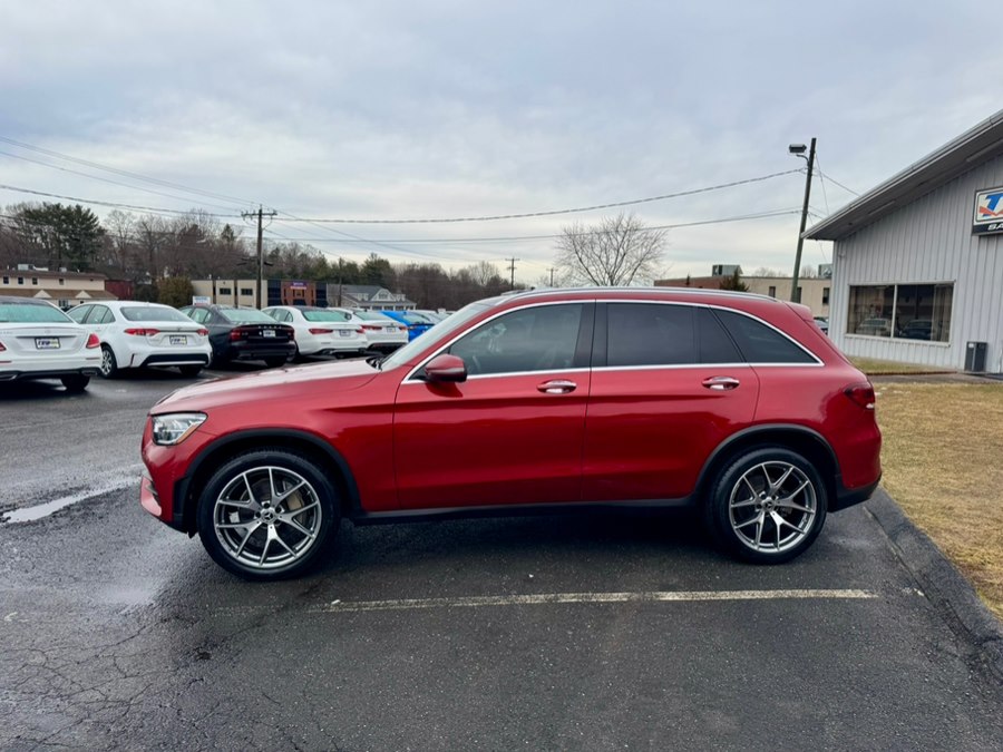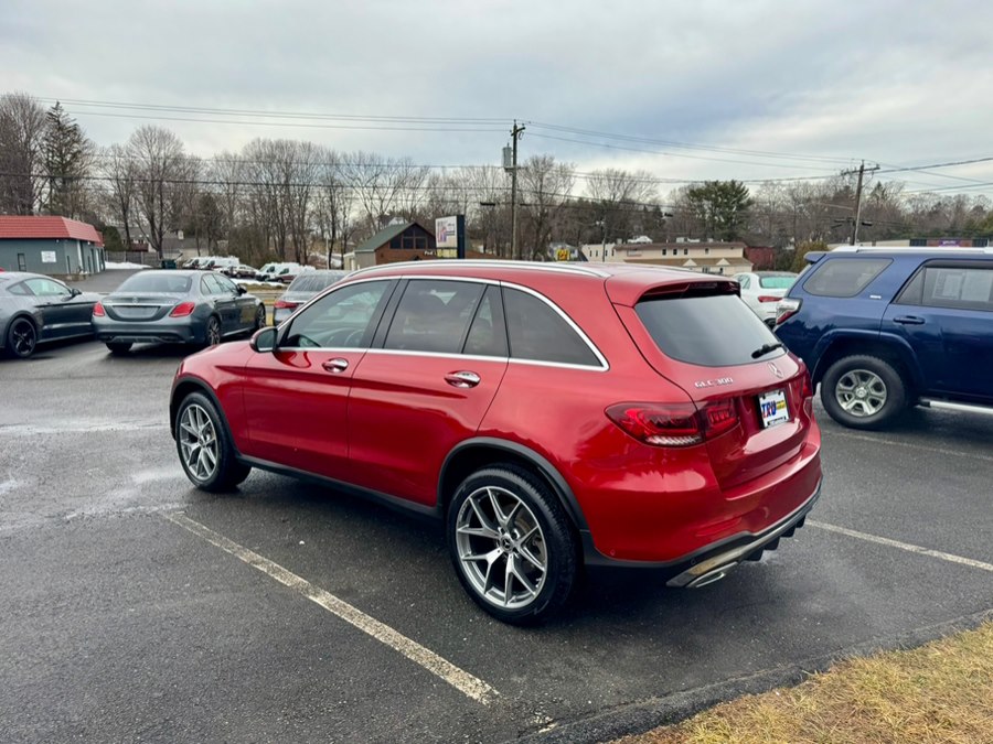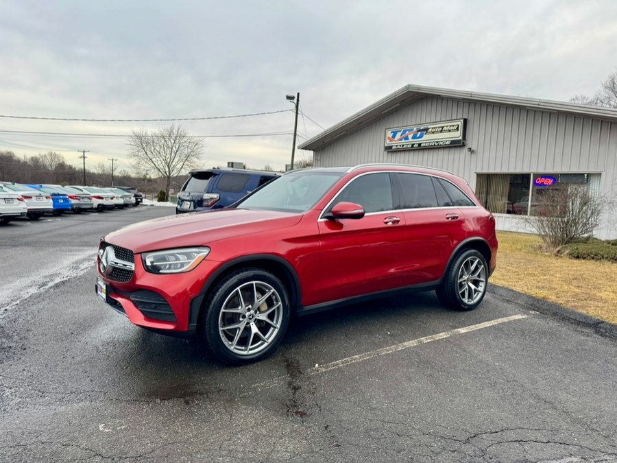 2021 Mercedes-Benz GLC GLC 300 4MATIC SUV, available for sale in Berlin, Connecticut. This vehicle features a designo Cardinal Red Metallic exterior with Saddle Brown leather interior. It is equipped with a 2.0L Inline-4 Turbo engine and a 9-speed automatic transmission. The car has 86,297 miles and is available at Tru Auto Mall in Berlin, CT.