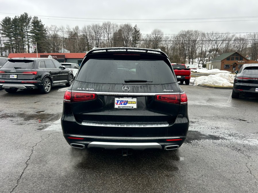 2021 Mercedes-Benz GLS GLS 450 4MATIC SUV, available for sale in Berlin, Connecticut. This vehicle features a 3.0L Biturbo V6 engine with a hybrid electric motor, offering a luxurious driving experience. The GLS 450 is equipped with a 9-speed automatic transmission and all-wheel drive, providing comfort and performance for up to seven passengers. The interior features Black Leather seats, advanced technology, and a spacious 7-seat configuration. This Mercedes-Benz GLS is available at Tru Auto Mall in Berlin, Connecticut.