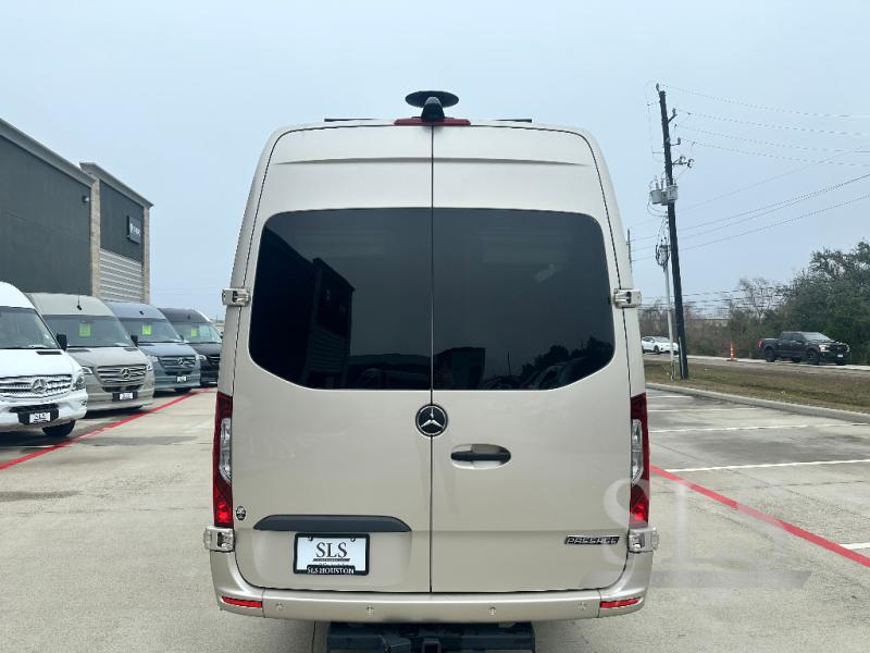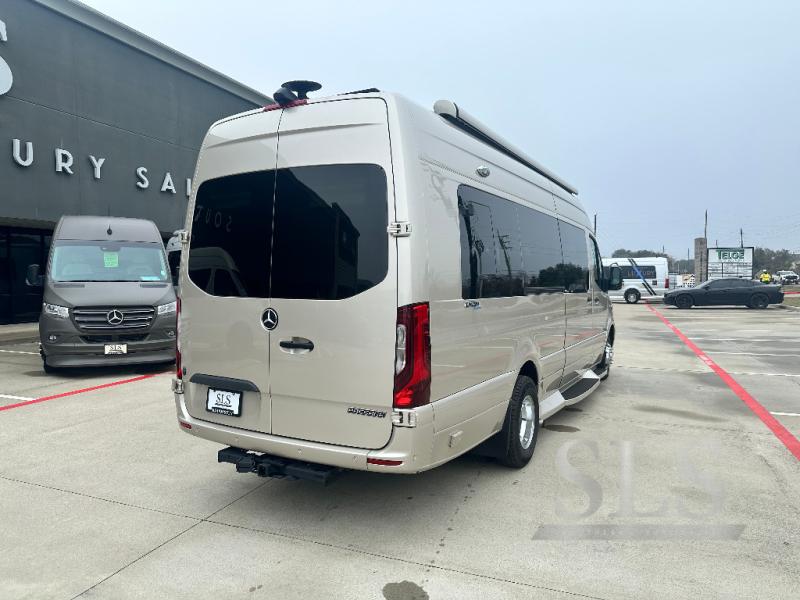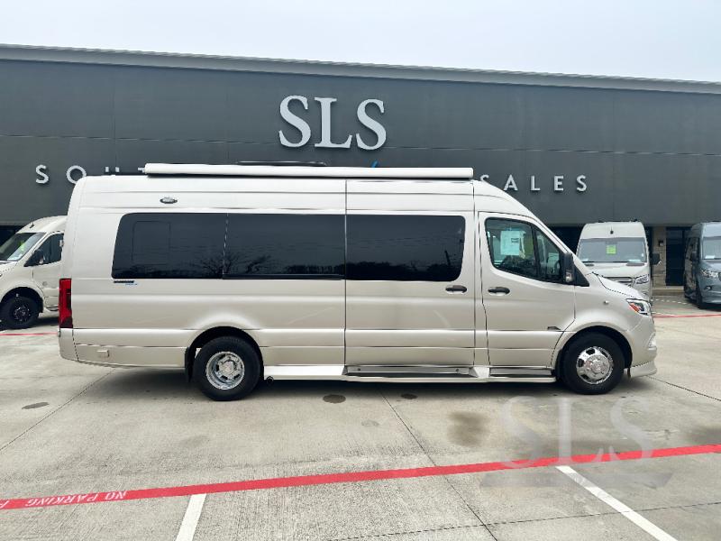 Midwest Automotive Designs Passage Class B diesel motorhome MD4 highlights: Four Captain's Chairs, Rear Lounge Bed, Removable Table, Wardrobe, Wet Bath. This Passage Class B diesel motorhome will have you daydreaming about your next trip with your family. Just imagine relaxing on the rear power lounge while planning your activities for the day. You also have the ability to add an optional power drop-down loft bed to this model so that you can have even more comfort and convenience. Come see what else you will love about this coach! Each Passage Class B diesel motorhome begins with the safety and performance engineering of the Mercedes-Benz Sprinter and includes luxury and convenience throughout. The diesel/electronic water heater offers hot water on demand, the stainless steel microwave and recessed cooktop allow you to make meals whenever you like, and the refrigerator allows you to store cold items while traveling. The style and comfort of the custom seating, composite seamless flooring, and solid surface countertops will impress you every time you take to the road. You also have the convenience of technology with rooftop solar charging system, an HDMI input, and multiple 120V outlets!
