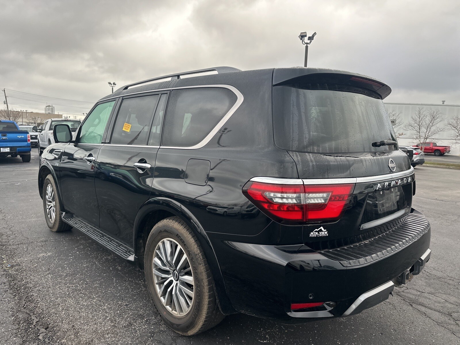 2021 Nissan Armada SL 4WD, 13 Speakers, 2.94 Axle Ratio, 20" Painted Alloy Wheels, 2nd Row Captain's Chairs, 2nd Row Center Console w/Padded Armrest, 3rd Row Carpeted Floor Mats - Captain Seat, 3rd row seats: split-bench, 4-Wheel Disc Brakes, ABS brakes, Air Conditioning, Alloy wheels, AM/FM radio: SiriusXM, Anti-whiplash front head restraints, Auto High-beam Headlights, Auto tilt-away steering wheel, Auto-dimming door mirrors, Auto-dimming Rear-View mirror, Auto-leveling suspension, Automatic temperature control, Brake assist, Bumpers: body-color, Captain's Chairs Package, Cruise Control, Delay-off headlights, Driver door bin, Driver vanity mirror, Dual front impact airbags, Dual front side impact airbags, Electronic Stability Control, Emergency communication system: NissanConnect Services, Four wheel independent suspension, Front anti-roll bar, Front Bucket Seats, Front Center Armrest, Front dual zone A/C, Front fog lights, Front reading lights, Fully automatic headlights, Garage door transmitter: HomeLink, Heated and Cooled Seats, Heated door mirrors, Heated Front Bucket Seats, Illuminated entry, Leather Seat Trim, Leather Shift Knob, Low tire pressure warning, Memory seat, Navigation System, NissanConnect featuring Apple CarPlay and Android Auto, Occupant sensing airbag, Outside temperature display, Overhead airbag, Overhead console, Panic alarm, Passenger door bin, Passenger vanity mirror, Power door mirrors, Power driver seat, Power Liftgate, Power moonroof, Power passenger seat, Power steering, Power windows, Radio: NissanConnect w/SiriusXM, Rear air conditioning, Rear anti-roll bar, Rear reading lights, Rear seat center armrest, Rear window defroster, Rear window wiper, Rearview Camera, Reclining 3rd row seat, Remote keyless entry, Security system, Speed-sensing steering, Speed-Sensitive Wipers, Split folding rear seat, Spoiler, Steering wheel memory, Steering wheel mounted audio controls, Tachometer, Telescoping steering wheel, Tilt steering wheel, Traction control, Trip computer, Turn signal indicator mirrors, Variably intermittent wipers, Voltmeter. (Must finance with Ford Motor Credit to receive online pricing - see dealer for details.) Proudly.