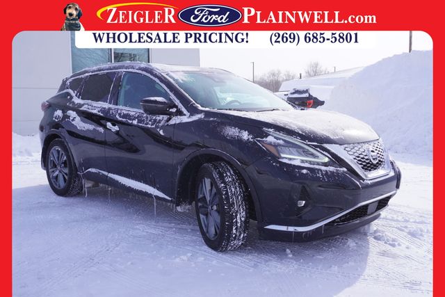 This 2021 Nissan Murano Platinum AWD is a stunning and well-equipped SUV that offers exceptional value and performance. Highlighted by its sleek black exterior, this Murano boasts a wealth of premium features that elevate the driving experience. Powered by a robust 3.5L V6 DOHC 24V engine and equipped with Nissan's advanced Xtronic CVT transmission, the Murano Platinum delivers a smooth and responsive ride, while the intelligent All-Wheel Drive system ensures confident handling in all conditions. With an impressive EPA-estimated 20 city/28 highway MPG, this SUV strikes the perfect balance between performance and efficiency. Step inside the Murano Platinum, and you'll be greeted by a spacious and well-appointed interior that exudes luxury and refinement. The semi-aniline leather-appointed seats are both heated and ventilated, ensuring maximum comfort in any weather. The NissanConnect infotainment system with Apple CarPlay and Android Auto integration keeps you connected and entertained on the go. Safety is also a top priority, with features like Blind Spot Warning, Rear Cross-Traffic Alert, and a 360-degree Around View Monitor to help you navigate with confidence. The Murano also comes equipped with a comprehensive suite of advanced safety technologies, including Automatic Emergency Braking, Intelligent Forward Collision Warning, and Intelligent Lane Intervention. Whether you're looking for a family-friendly SUV, a capable all-weather companion, or a premium driving experience, this 2021 Nissan Murano Platinum AWD checks all the boxes. Don't miss your chance to own this exceptional vehicle – contact us today to schedule a test drive and experience the difference for yourself.