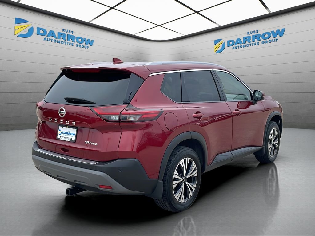 2021 Nissan Rogue SV Scarlet Ember Tintcoat AWD 2.5L I4 DOHC 16V CVT with Xtronic Android Auto & Apple CarPlay, Bluetooth connection for mobile phone, power liftgate, power sliding sunroof/moonroof, rear back-up camera with display, heated front seats, heated steering wheel, AWD, Auto High-beam Headlights, Automatic temperature control, Electronic Stability Control, Front dual zone A/C, Heated door mirrors, Power door mirrors, Power driver seat, Remote keyless entry, Steering wheel mounted audio controls. Clean CARFAX. CARFAX One-Owner. Odometer is 604 miles below market average! Includes exclusive membership status in the Russ Darrow Rewards Program. Earn points for every dollar spent on goods and services at any Russ Darrow location, plus extra points if purchasing packages with the Finance office. Use these points on your next new or used vehicle purchase at any Russ Darrow Dealership. You will earn $10 for every 1,000 points redeemed, up to a maximum redemption of $500 per transaction. For more detailed information visit russdarrowrewards.com. *tax, title, license, fees and any dealers ads not included in sale price.