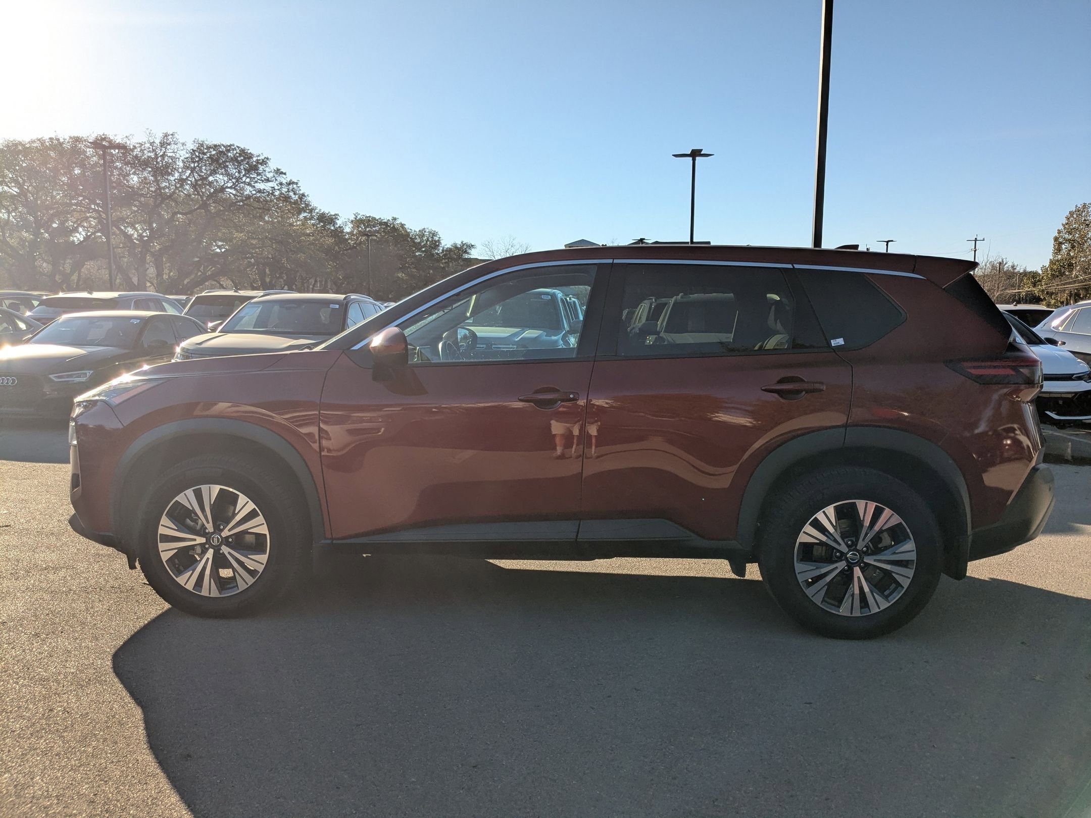 CARFAX One-Owner. Clean CARFAX. Priced below KBB Fair Purchase Price! Odometer is 11493 miles below market average! 26/34 City/Highway MPG We're proud of our Posted Pricing policy, which means that no matter which vehicle you choose at our dealership, you get one competitive, market-based price. This ensures you only ever have a hassle-free, stress-free experience with us. This 2021 Nissan Rogue SV in Scarlet Ember Tintcoat comes with the following features: 2.5L I4 DOHC 16V CVT with Xtronic FWD 18 Aluminum Alloy Wheels, 4-Wheel Disc Brakes, 5.604 Axle Ratio, 6 Speakers, ABS brakes, Air Conditioning, Alloy wheels, AM/FM Radio, Auto High-beam Headlights, Automatic temperature control, Black Splash Guards (Set of 4), Brake assist, Bumpers: body-color, Chrome Rear Bumper Protector, Cloth Seat Trim, Delay-off headlights, Driver door bin, Driver vanity mirror, Dual front impact airbags, Dual front side impact airbags, Electronic Stability Control, Emergency communication system: NissanConnect Services, First Aid Kit, Floor Mats w/1-Piece Cargo Area Protector, Four wheel independent suspension, Front anti-roll bar, Front Bucket Seats, Front Center Armrest, Front dual zone A/C, Front reading lights, Fully automatic headlights, Heated door mirrors, Illuminated entry, Knee airbag, Low tire pressure warning, NissanConnect featuring Apple CarPlay and Android Auto, Occupant sensing airbag, Outside temperature display, Overhead airbag, Overhead console, Panic alarm, Passenger door bin, Passenger vanity mirror, Power door mirrors, Power driver seat, Power steering, Power windows, Radio data system, Rear anti-roll bar, Rear Parking Sensors, Rear seat center armrest, Rear side impact airbag, Rear window defroster, Rear window wiper, Remote keyless entry, Security system, Speed control, Speed-Sensitive Wipers, Split folding rear seat, Spoiler, Steering wheel mounted audio controls, Tachometer, Telescoping steering wheel, Tilt steering wheel, Traction control, Trip computer, Turn signal indicator mirrors.