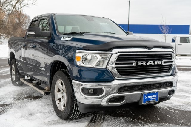 Stand out on the road in this 2021 Ram 1500 Big Horn/Lone Star 4WD, finished in bold Patriot Blue Pearlcoat and available at Maguire Chrysler Dodge Jeep Ram of Syracuse. Built to deliver the perfect balance of capability, comfort, and everyday drivability, this Ram 1500 is powered by a reliable 3.6L V6 24V VVT engine paired with a smooth and efficient 8-speed automatic transmission, making it ideal for both work and weekend use. With 4WD capability, this truck provides confident traction and control in all driving conditions, including Syracuse winters and off-road terrain. The Big Horn/Lone Star trim offers a well-appointed interior with premium cloth seating, intuitive technology, and smart storage solutions designed to keep you comfortable and connected on every drive. The bold Patriot Blue Pearlcoat exterior enhances the Ram's strong, muscular design, while its spacious cabin and versatile bed make it a practical choice for hauling gear, tackling jobsite tasks, or heading out on a road trip. Advanced safety features and a refined ride quality help set the Ram 1500 apart from the competition. If you're searching for a dependable full-size truck in Syracuse, this 2021 Ram 1500 Big Horn/Lone Star 4WD at Maguire CDJR of Syracuse delivers proven performance, everyday comfort, and unmistakable Ram style.
