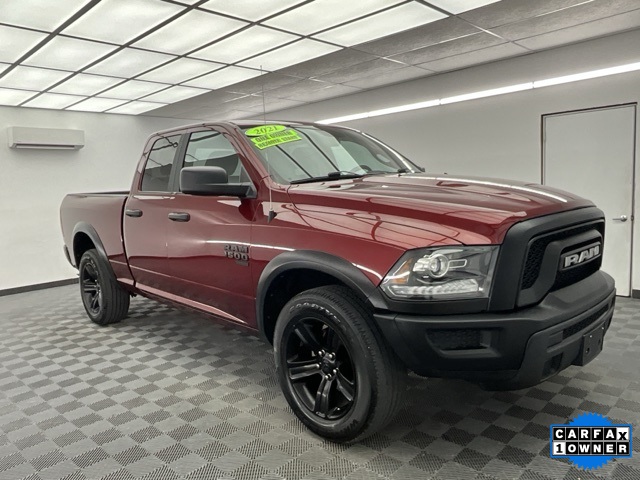 CARFAX One-Owner. Delmonico Red Pearlcoat 2021 Ram 1500 Classic Warlock Quab Cab 4 Wheel Drive 4WD 8-Speed Automatic 3.6L V6 24V VVT One-owner, well maintained, clean, remote start, tow package, electronic stability control, keyless entry, heated mirrors, rear backup sensors, rear backup camera, Bluetooth, 4x4. Recent Arrival! We sell above average vehicles at below average prices! Visit WWW.SHOWMEAUTOMALL.NET for more information!