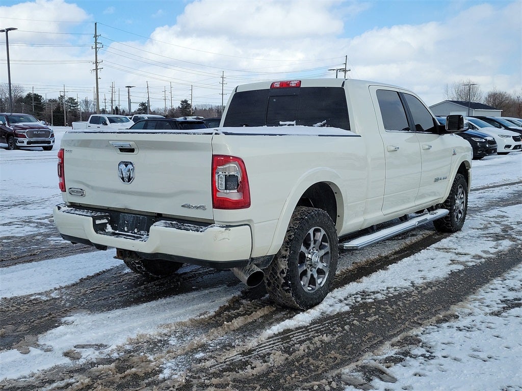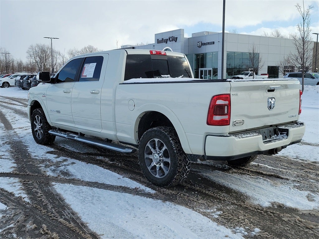 Ram 2021 3500 Laramie Longhorn 1-Year SiriusXM Guardian Trial, 12 Touchscreen Display, 17 Speaker harman kardon Premium Sound, 20 x 8.0 Polished Aluminum Wheels, 3.73 Axle Ratio, 4G LTE Wi-Fi Hot Spot, 5th Wheel/Gooseneck Towing Prep Group, Apple CarPlay, Apple CarPlay/Android Auto, Auto High-beam Headlights, Automatic temperature control, Blind Spot & Cross Path Detection (DISC), Body Color Bumper Group, Center Hub, Chrome Flat Wheel-to-Wheel Side Steps, Chrome Tow Hooks, Cold Weather Group, Disassociated Touchscreen Display, Engine Block Heater, Front dual zone A/C, Front fog lights, Google Android Auto, GPS Antenna Input, GPS Navigation, HD Radio, Heated Front Seats, Heated rear seats, Heated Second Row Seats, Heated Steering Wheel, Illuminated entry, Integrated Voice Command with Bluetooth®, Leather steering wheel, Longhorn Level 1 Equipment Group, Memory seat, MOPAR Winter Front Grille Cover, Navigation System, Outside temperature display, Painted Front Bumper, Painted Rear Bumper, ParkView Rear Back-Up Camera, Pedal memory, Power 8-Way Adjustable Passenger Seat, Power Adjust 8-Way Driver Seat, Power Deployable Running Boards, Power driver seat, Power passenger seat, Premium Filigree Leather Seats, Quick Order Package 2HK Longhorn, Radio: Uconnect 12.0 w/Navigation, Rain sensing wipers, Ramcharger Wireless Charging Pad, Rear Wheelhouse Liners, Remote keyless entry, Selectable Tire Fill Alert, SiriusXM Satellite Radio, SiriusXM Traffic Plus, SiriusXM Travel Link, SiriusXM w/360L, Split folding rear seat, Tilt steering wheel, Ventilated Front Seats. 4D Mega Cab Pearl White Cummins 6.7L I6 Turbodiesel 6-Speed Automatic 4WD