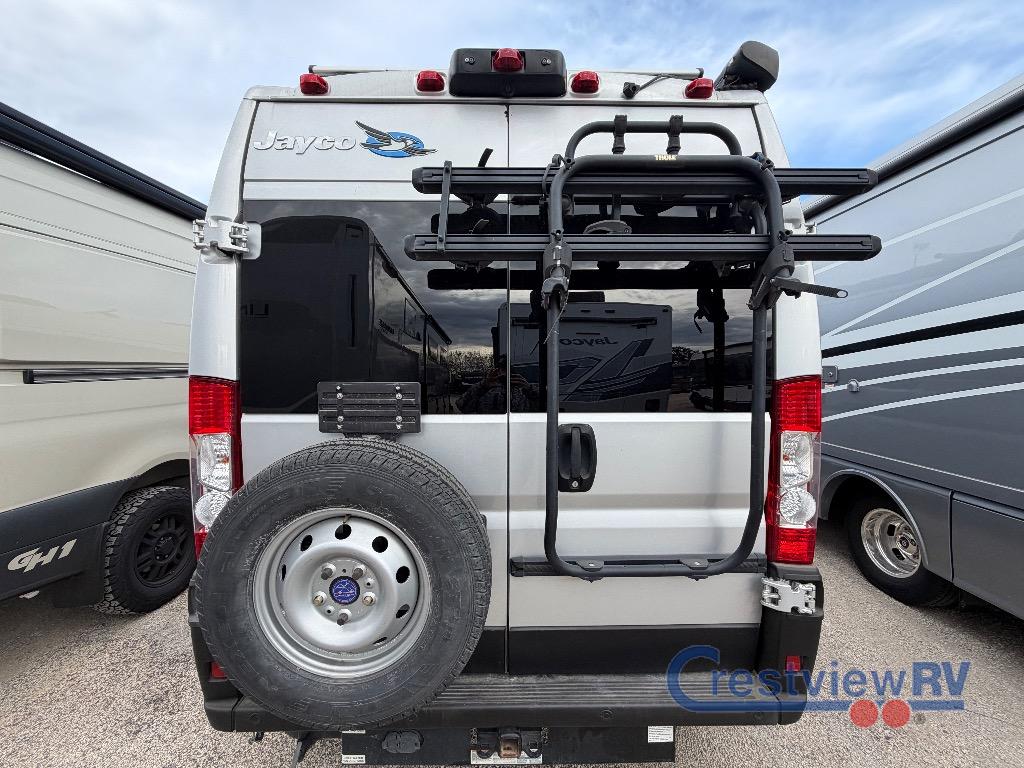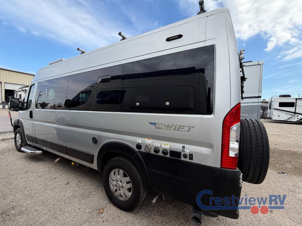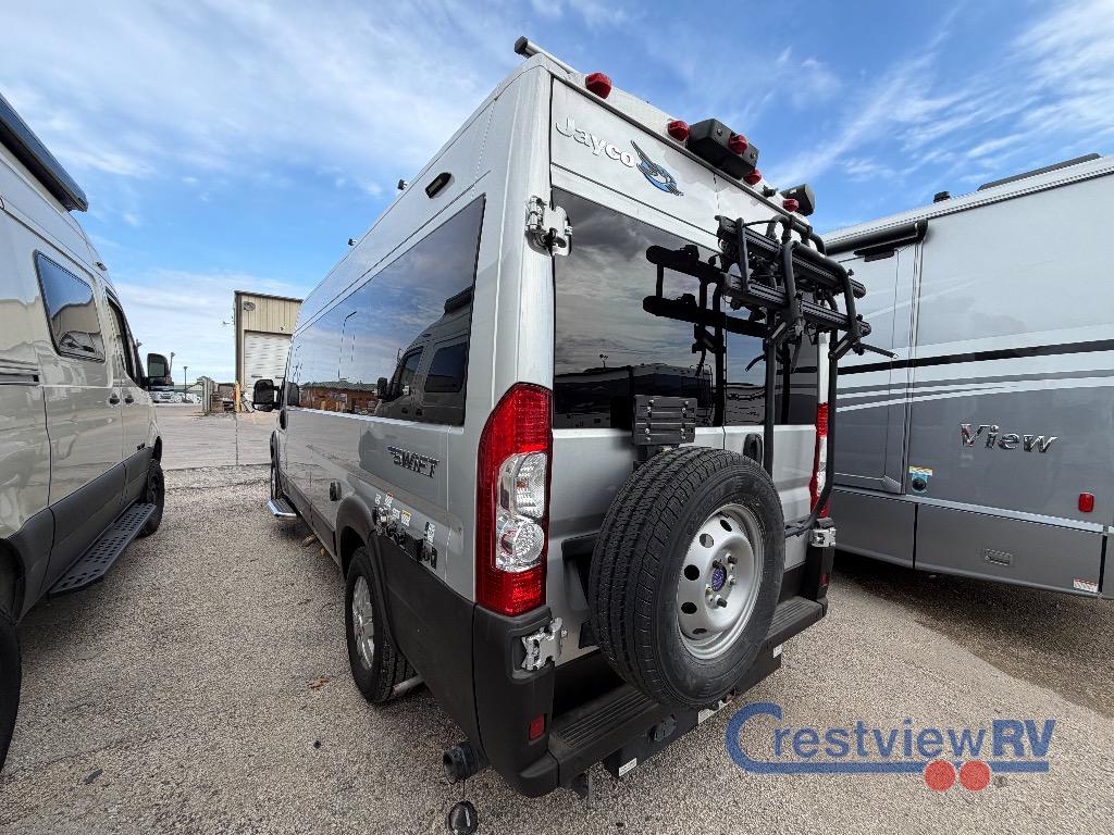Jayco Swift Class B gas motorhome 20T highlights: 30" x 74" Twin Beds, Rear Wet Bath, Expandable Table, Large Wardrobe. This coach is easy to drive in the city or on the highway to visit family in another state or camp at your favorite RV park. Once at your destination you can quickly turn around the Ultraleather swivel driver and passenger seats with 6-way lumbar adjustments to face the rear to visit with the cook using the convection microwave and cooktop. You can store your cold items in the 3.1 cu. ft. AC/DC refrigerator and your dry goods in the ample overhead cabinetry. At night you can sleep on your own twin bed with adjustable headrests, Froli sleep system and filler cushion to convert to a king to sleep one more! Some additional features that you are sure to enjoy include the Truma Combi Eco Plus water heater and furnace, the air conditioner, the Thule bike rack and roof rack for extra gear, and the roof-mounted GoPower solar panel with integrated control panel when going off-grid. With any Swift Class B gas motorhome by Jayco, you will experience the combination of ease of driving an everyday van with the comforts and conveniences for any adventure. The JRIDE technology provides an over-sized rear stabilizer bar that reduces the body roll of the vehicle during fast cornering or over road irregularities, and the Hellwig helper springs work with the chassis' existing springs to give the RV more support which improves the stability under heavy loads. Inside you will find convertible sleeping spaces, kitchen amenities, residential vinyl flooring for easy cleaning, and a wet bath to be able to skip the public facilities. Choose a Swift today!